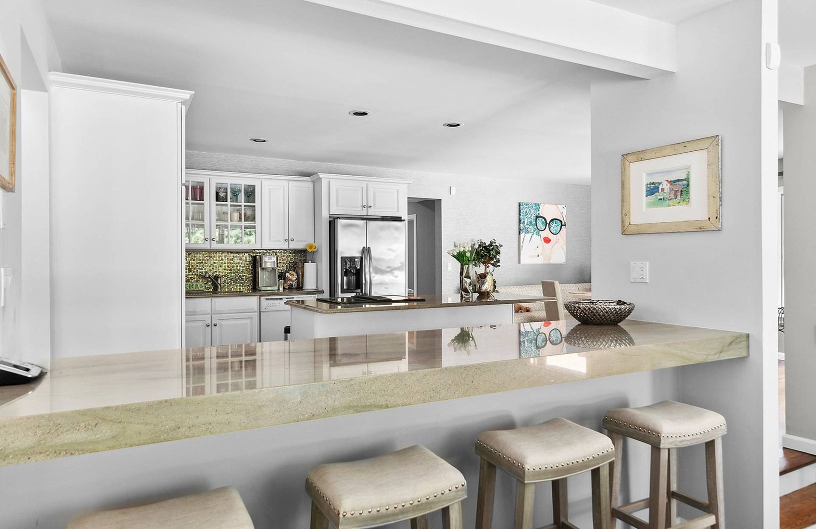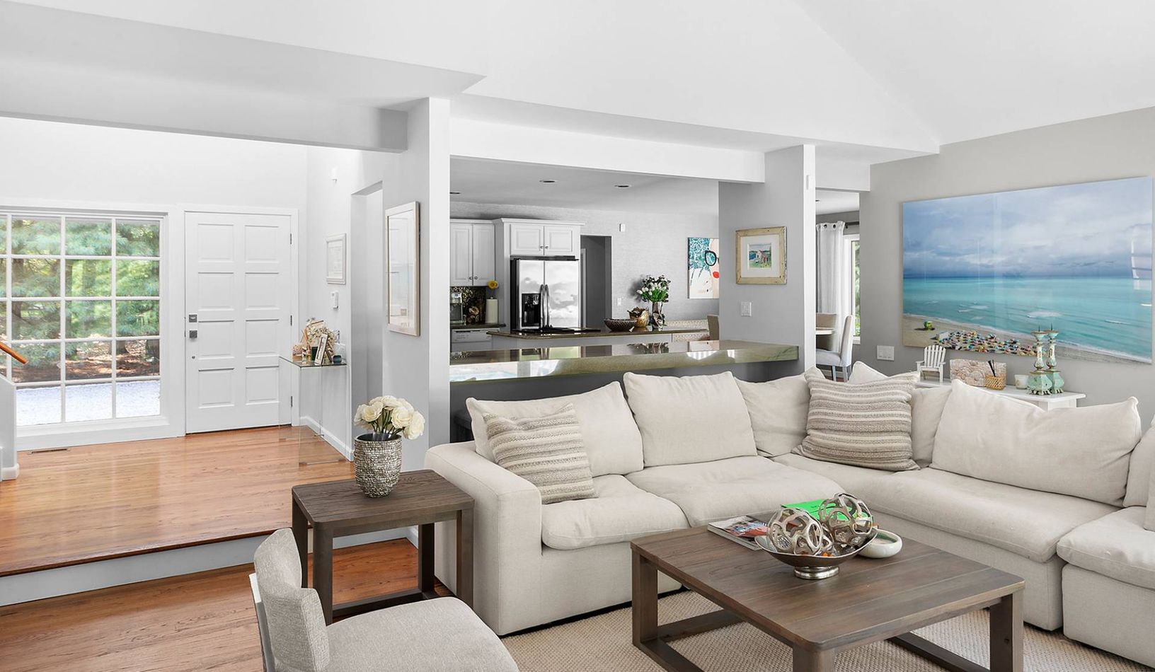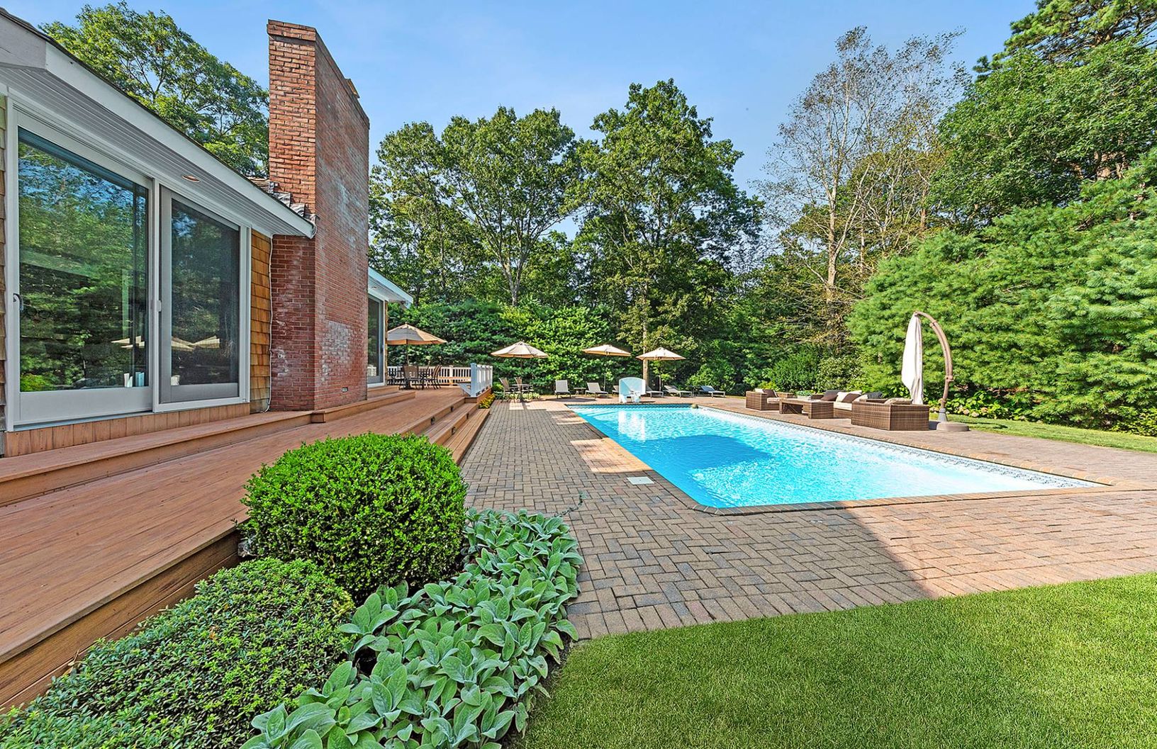 Set on a storybook tree lined block, on a meticulously landscaped .93 acre minutes to East Hampton Village and Sag Harbor, this architectural gem is the home you have been dreaming about. Perfect in scale, flooded with natural light and up-to-date inside, the property features a stylish eat-in kitchen/dining area that opens to the double-height living room with grand fireplace and 3 oversized sliding glass doors out to a large and inviting out