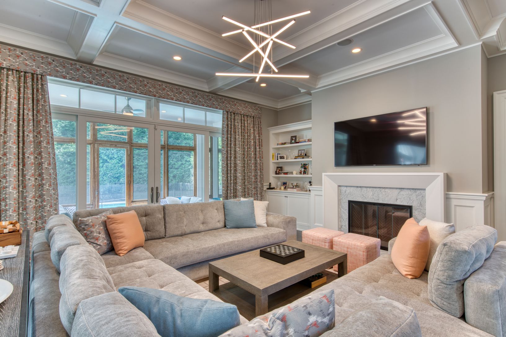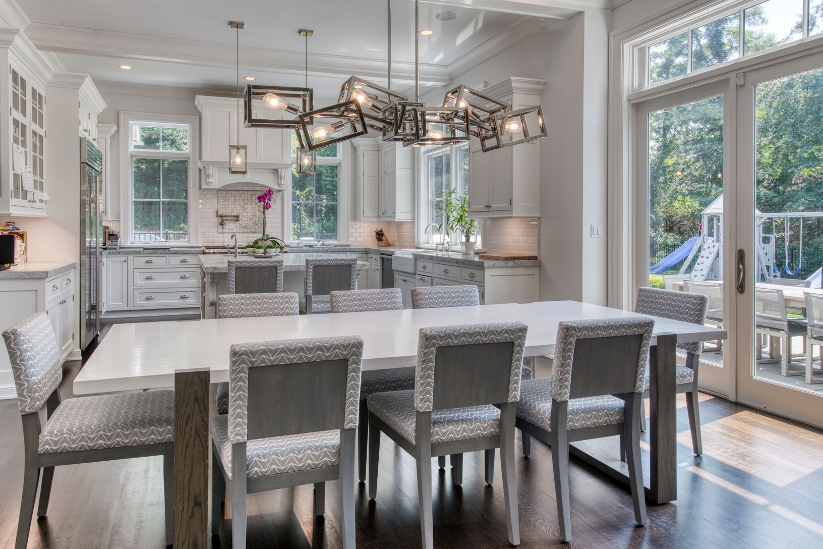 In the heart of Bridgehampton and set back on a long driveway, this traditional house designed by McDonough and Conroy architects is the quintessential Hamptons retreat. As one enters this home, they are greeted by an expansive two-story paneled foyer with stunning custom procured light fixtures throughout. The house was designed to have an open floor plan but still offers a formal dining room, a formal living area with wet bar, and an extende