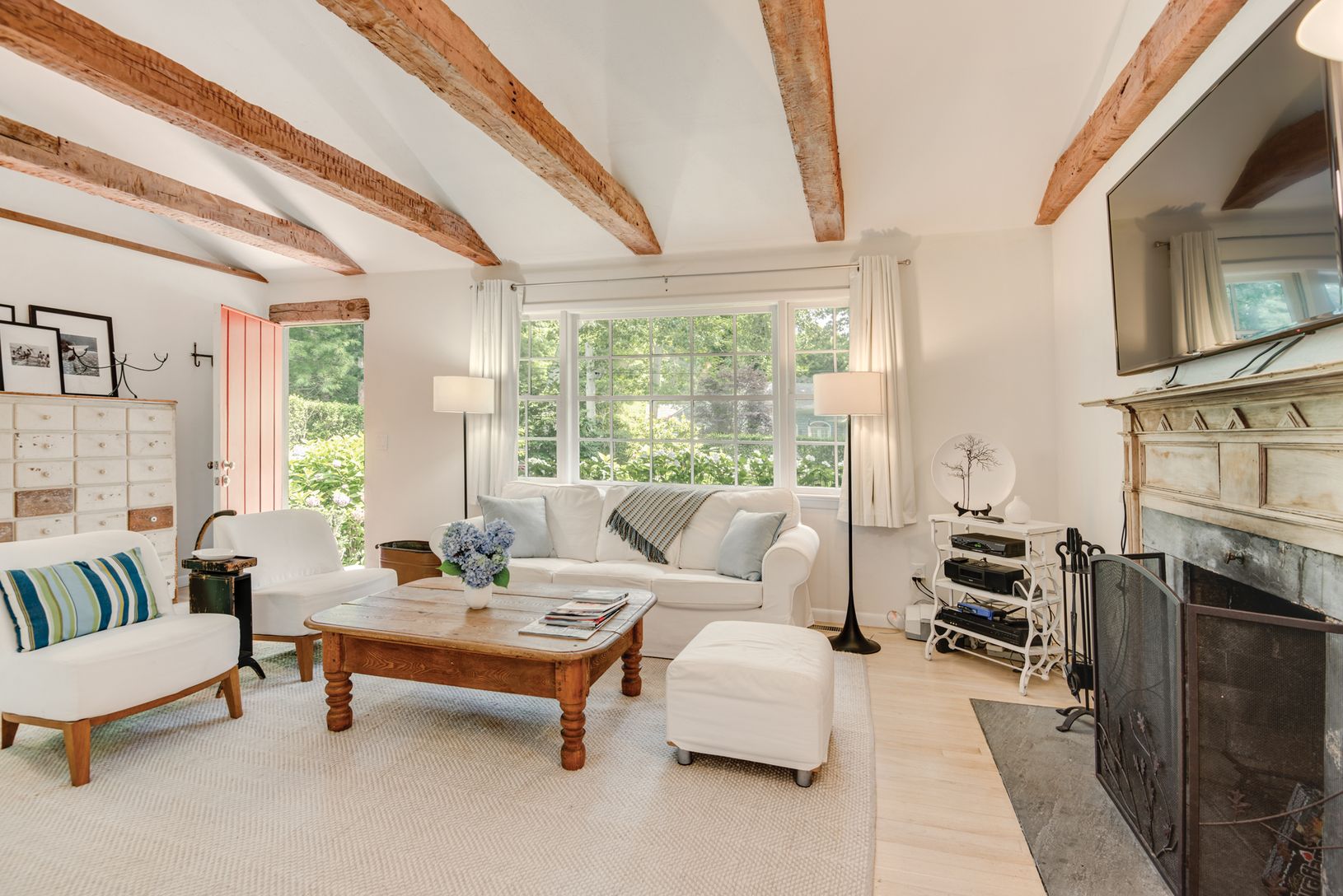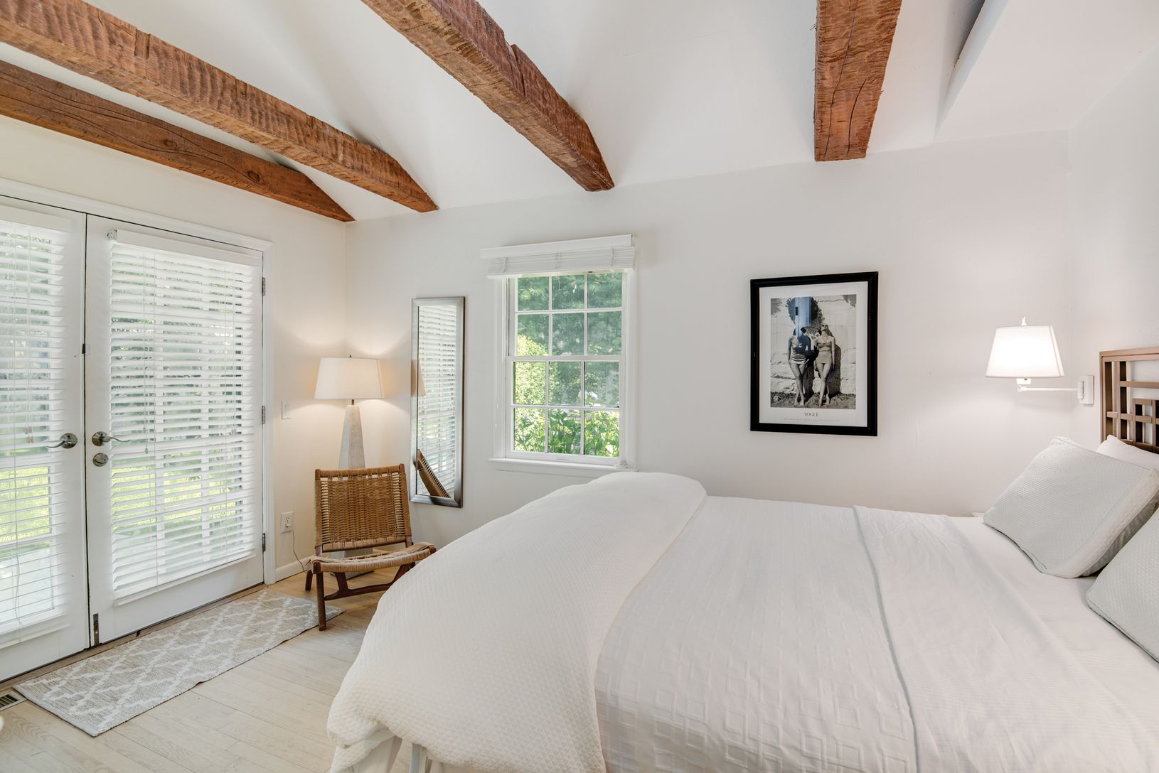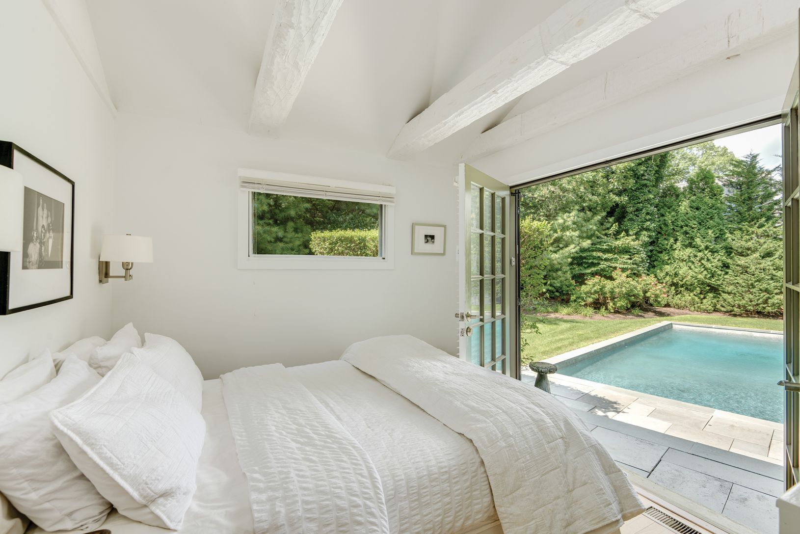 Charming renovated traditional south of the highway in Wainscott. Three bedrooms, one bath, large kitchen and open dining room. French doors everywhere you look. Living room with beamed ceiling and fireplace. Open floor plan. Central air conditioned. Gunite pool, stone patios and mature landscaping. Short distance to ocean beaches as well as close to shopping and Jitney stop. Private and really perfect.