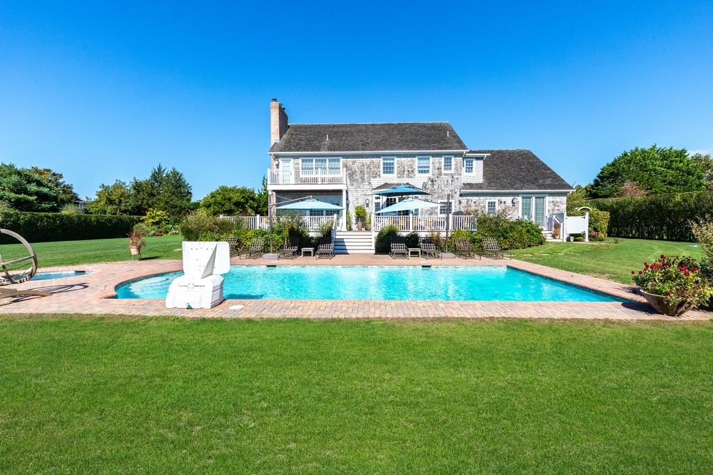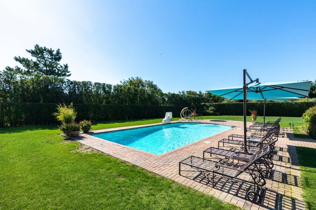 Quintessential 4,500 sq. ft traditional Hamptons home with finished basement sitting on 1 acre. Gated private driveway leads to a beautiful, extremely well manicured lawn with an in-ground gunite pool, large patio and deck area, outdoor shower and gardens. First floor offers a grand double height entry-way, newly renovated kitchen with top of the line appliances and mini bar open to a spacious living room with floor to ceiling doors and window