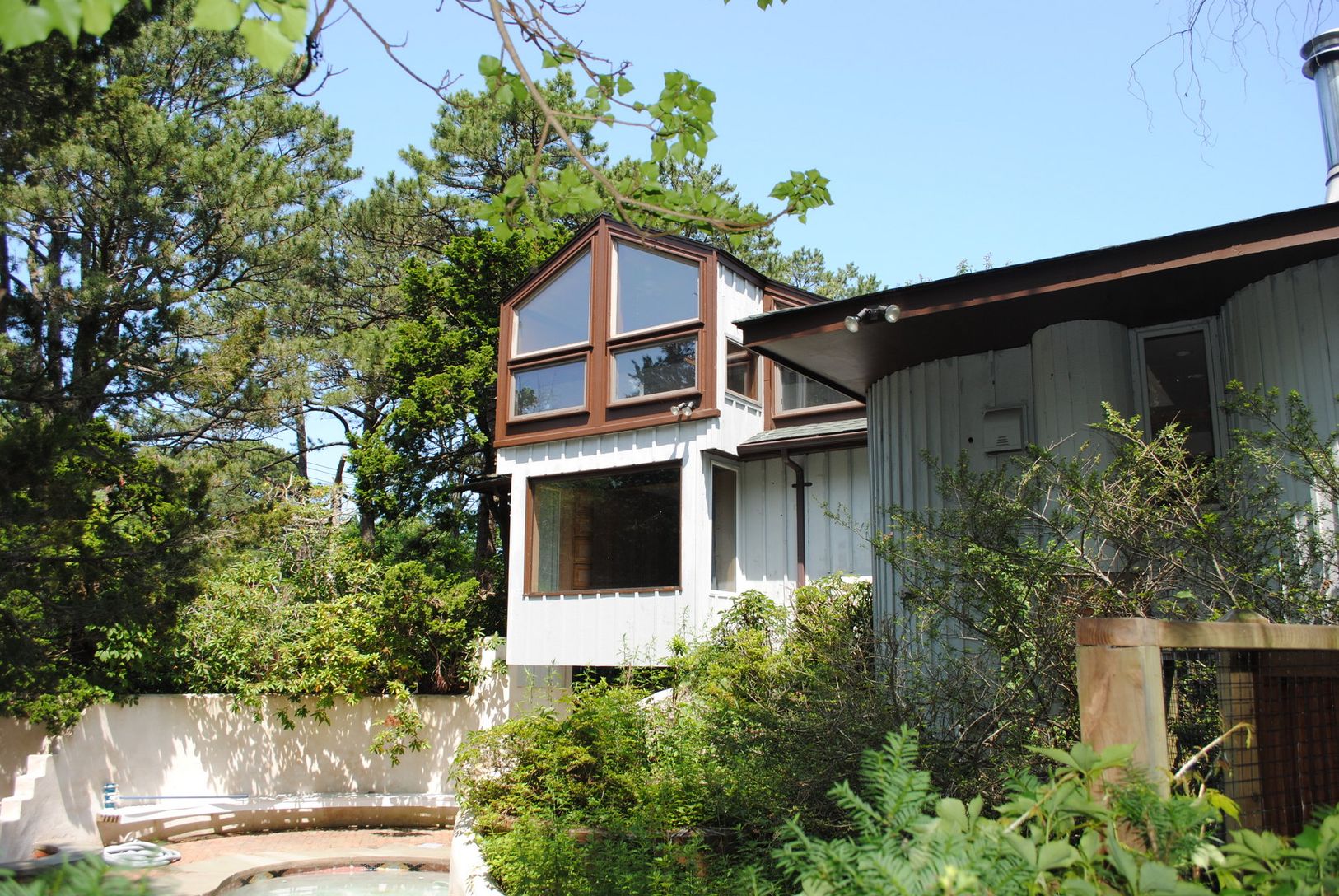 The main house and the two out buildings all have brand new cedar shingled roofs. The courtyard and smaller garage building are perfect for honing your craft, practicing your hobby or playing host to stylish dinner parties. A third building on the property for cars boats and storage on three levels. This large lot has room to park multiple cars, trucks or boats away from the house. The main house is a multi-level home with a free form gunite