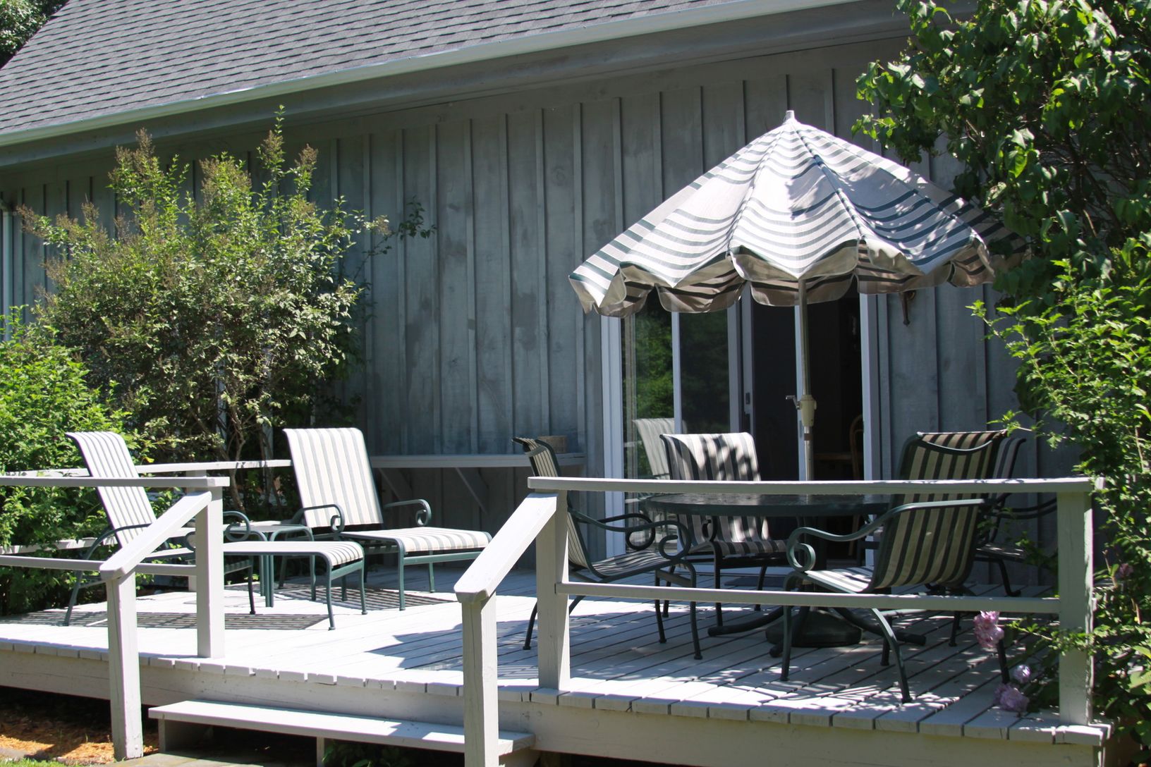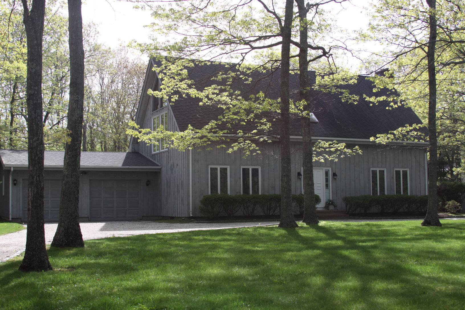 On a beautiful acre minutes to beaches and Gardiners Bay Country Club golf course, this spacious 4 bedroom, 2.5 bath home offers a living room with fireplace, formal dining room with access to a backyard deck blooming with lilacs, eat-in-kitchen, huge master suite with clerestory windows, beamed cathedral ceiling and private bath plus a 2 car attached garage, full basement and nicely landscaped yard with free form gunite pool and stone patio.