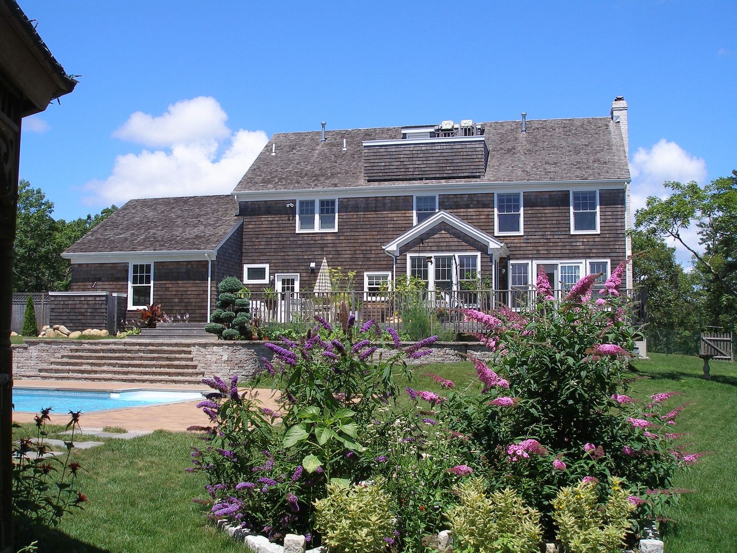 Easy access to East Hampton, Bridgehampton, and Sag Harbor from this large three-bedroom, three and one half bath traditional on 2.8 ultra private acres. Multiple outdoor venues include a lighted gazebo, Koi pond, 20 x 40 heated pool, outdoor shower and ribbon ocean views from the upper-level deck. Two-car garage and expansive child-safe deck.