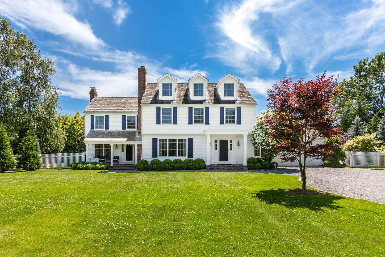 A cul-de-sac leads to this private, two story Traditional on beautifully landscaped 1.3 acres. This well-maintained home offers formal living room with fireplace, chef's kitchen and dining area, spacious family room with fireplace and separate office. The second level features primary suite with sitting area, fireplace and full bathroom, a junior en-suite, plus 2 additional bedrooms and full hall bath. Finished basement includes gym, sitting a