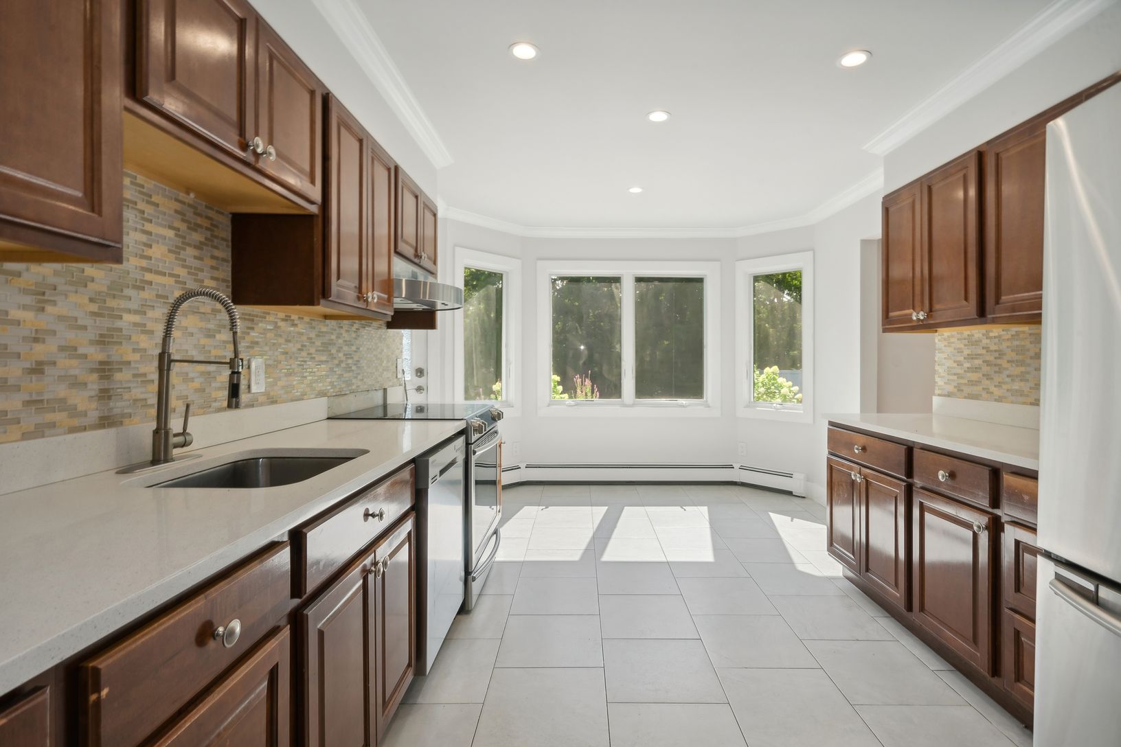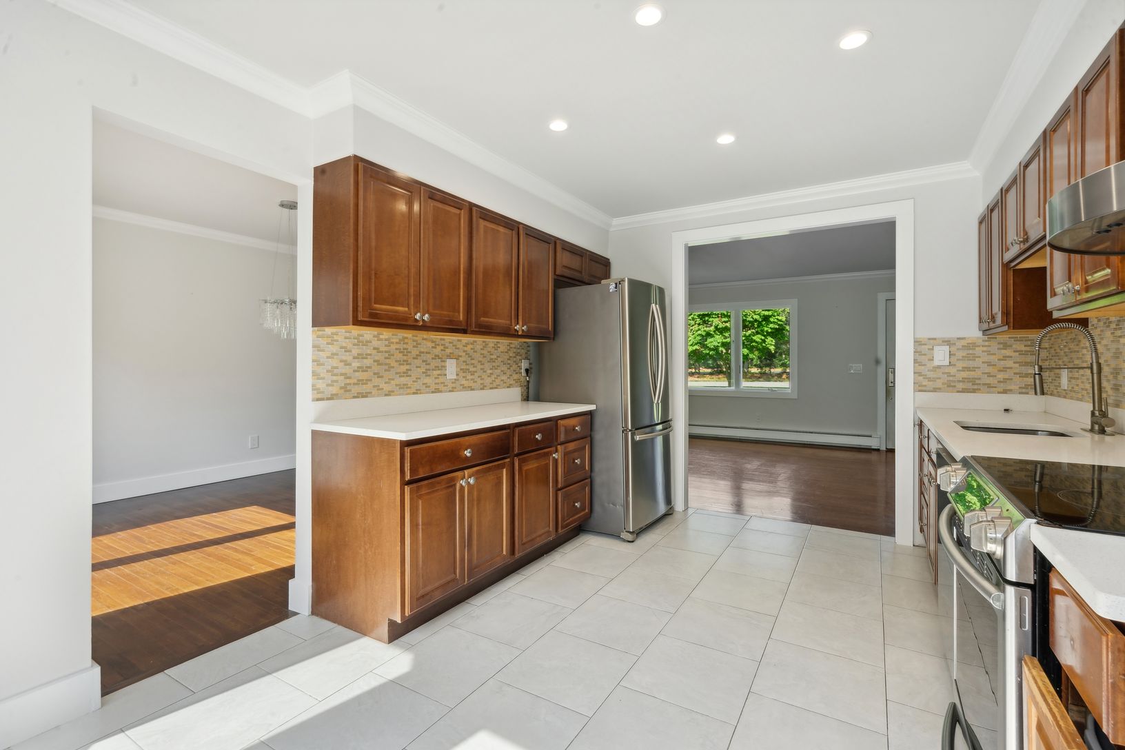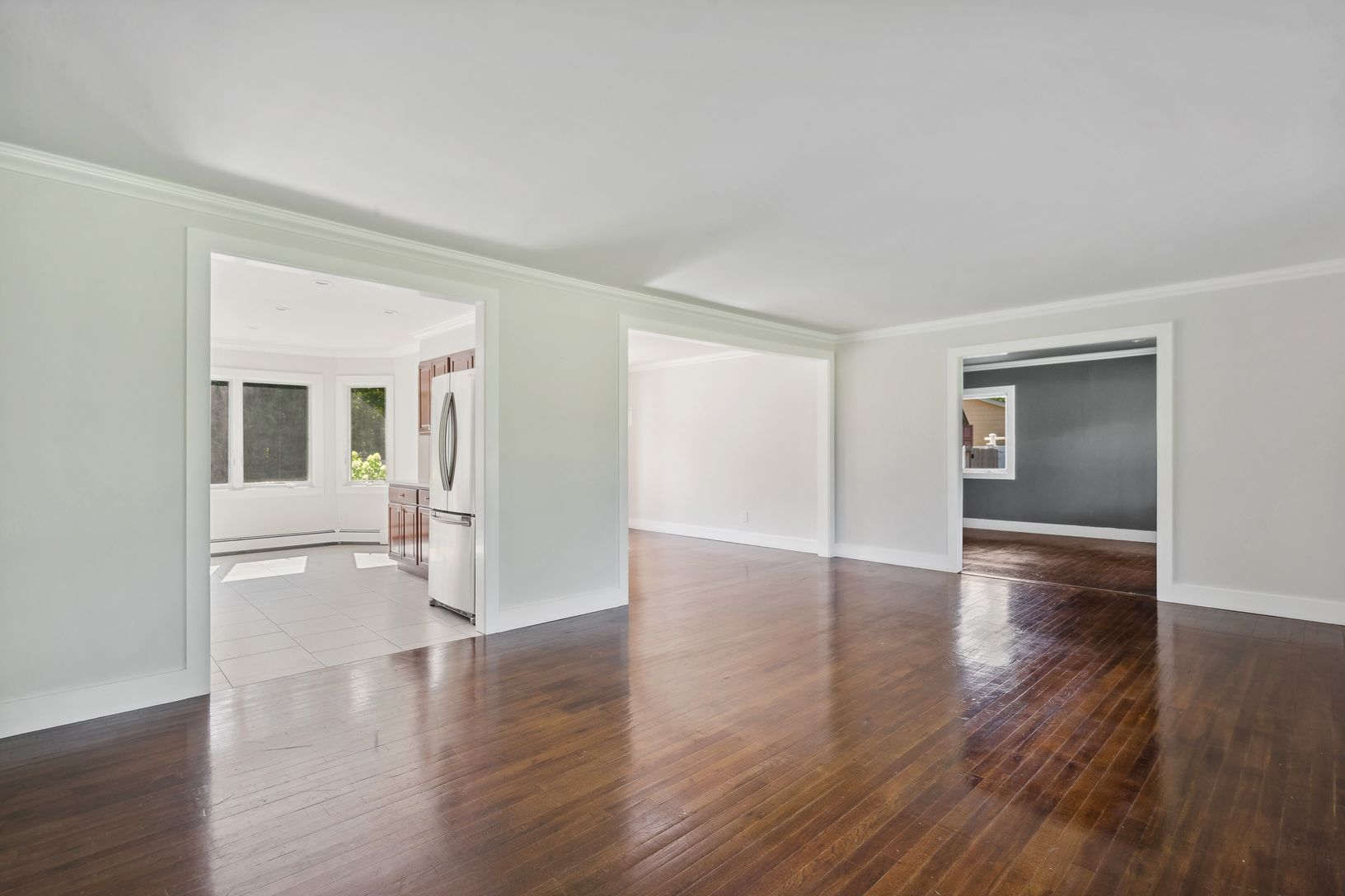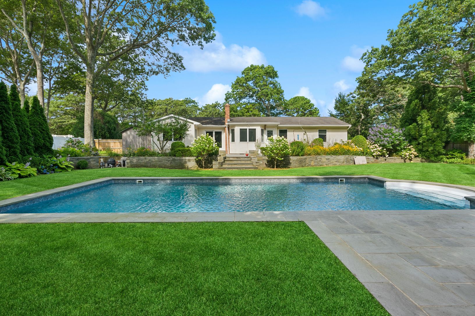 Four bedrooms, large living room, formal dining room, eat in kitchen, wood floors, two full baths, large slate patio, in ground pool, lush gardens. Full basement, washer/dryer.