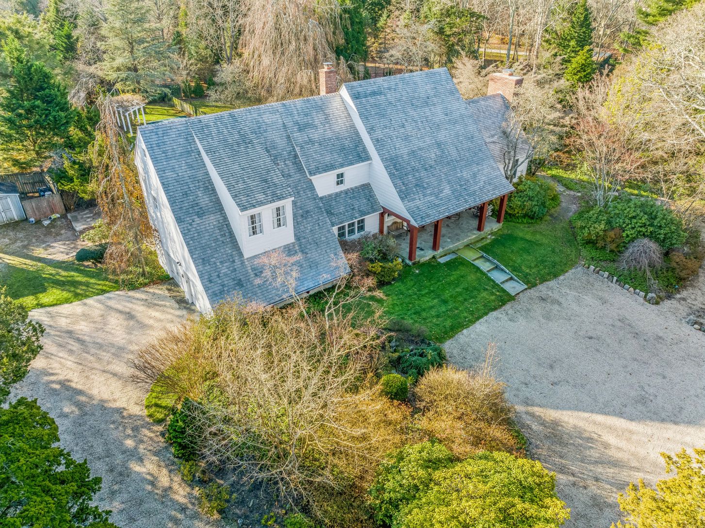 Located on one of Remsenburg’s most sought after streets engulfed by botanical gardens with hundreds of rare specimens including European Weeping Beach and Southern Magnolia trees sits this secret getaway all enclosed by deer proof fencing and automatic entry gate. The stately retreat with roughly 4000 sq ft of living space features a large Pecky Cypress great room with fireplace, country kitchen with commercial grade Garlin stove, formal dini