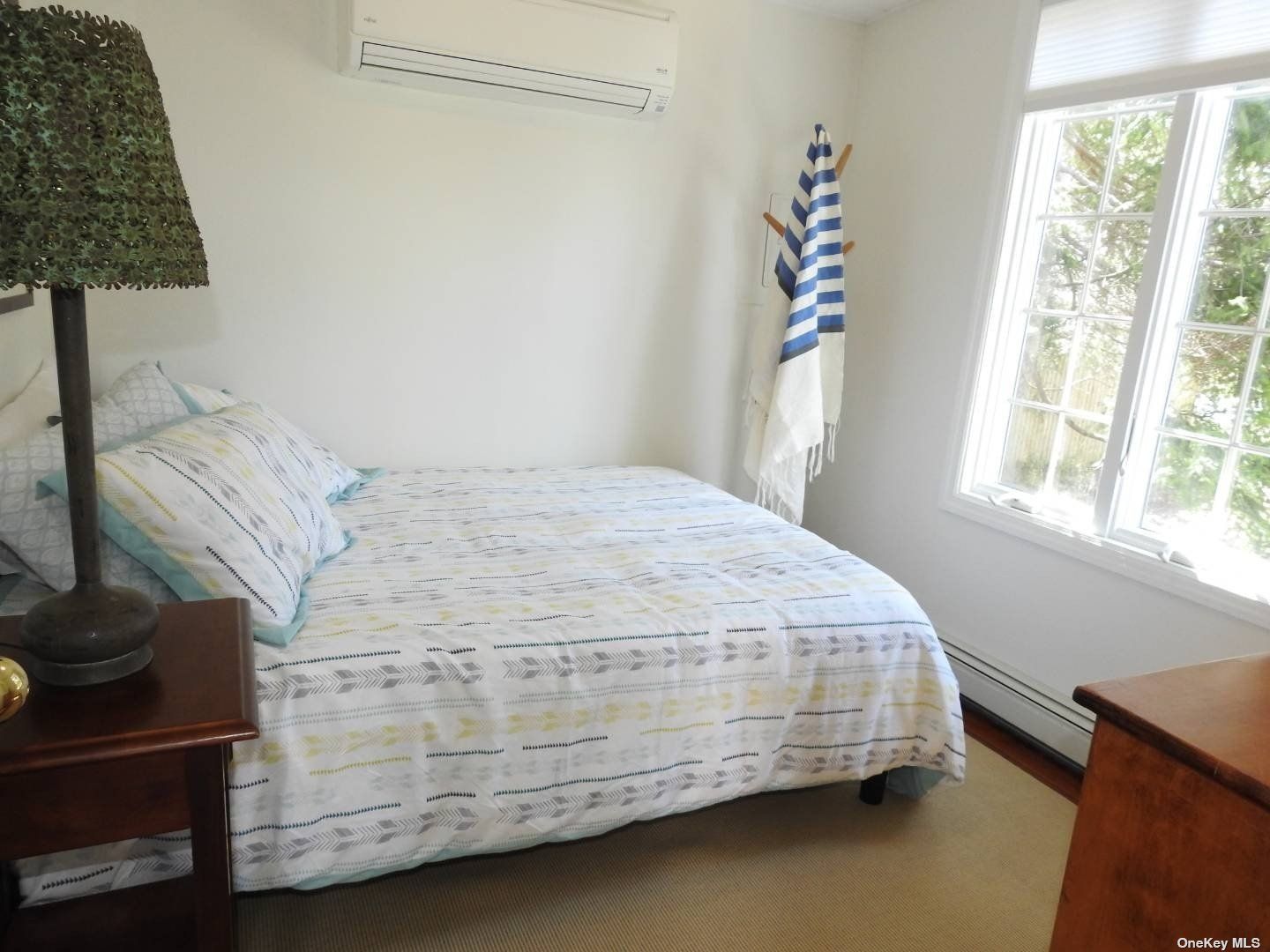 Pied a Terre in the Village of Westhampton Beach. Bright and sunny 460 sq ft cottage with with fenced in spacious back yard, offers a living room, eat-in-kitchen, 2 bedrooms and 1 full bathroom. Parking for two. Outdoor shower, washer & dryer, ductless air conditioning unit in bedroom, shed for bikes and back deck. Close to town and ocean beaches.
