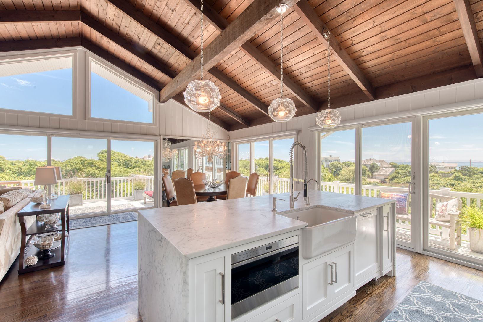 Life's a beach in Montauk at this upside-down, ocean view house positioned perfectly to take in the views and enjoy the summer vibes. Built by renowned builder Ed Sweeney, the home is a 3 minute walk to the life guarded beach on the ocean and a short stroll into Montauk Village. Upgrades in this modern beach house include a new custom kitchen with marble counter tops, Sub Zero appliances, brick gas fireplace and more. Expansive wood floors, op