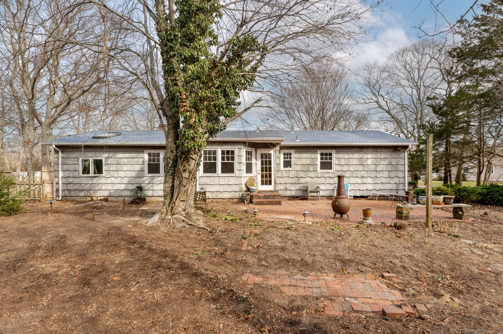 Cedar Shingle Ranch on .46 Acre corner lot in the Tiana Shores Association Beach Community. Home features Living Room with Brick Fireplace & Hardwood Floors throughout. Eat In Kitchen with Bay Window, Dining Room or Den, 2 Bedrooms, 2 Bathrooms. Front Porch & Rear Patio.