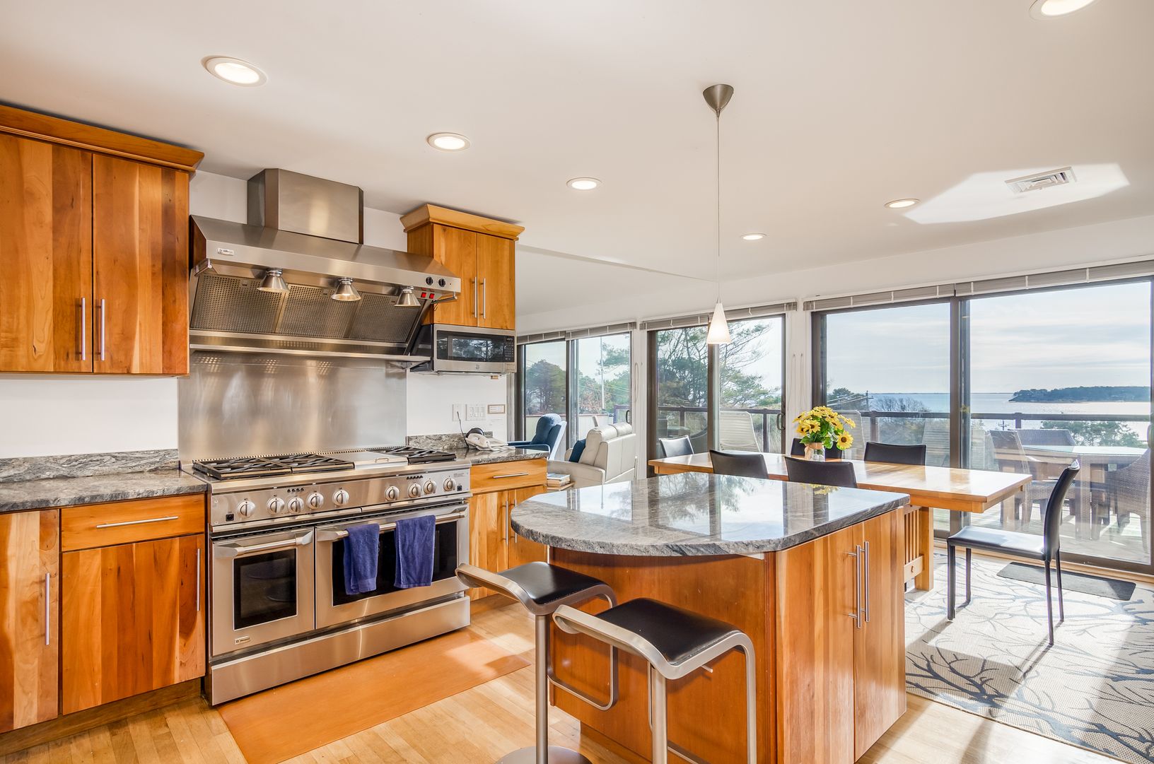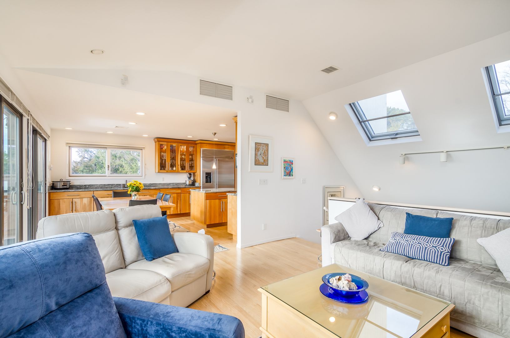 Welcome to quintessential Hamptons living. Set high atop the bluff facing due south, enjoy epic panoramic views of Shinnecock Bay throughout. Steps away, enjoy Beach Rights at your own private beach. Step into the kitchen, and find a center island, granite countertops, gas cooking and GE Monogram Appliances. The open floorpan flows beautifully into your den with vaulted ceilings and skylights, truly accentuating the spacious feel of the home.