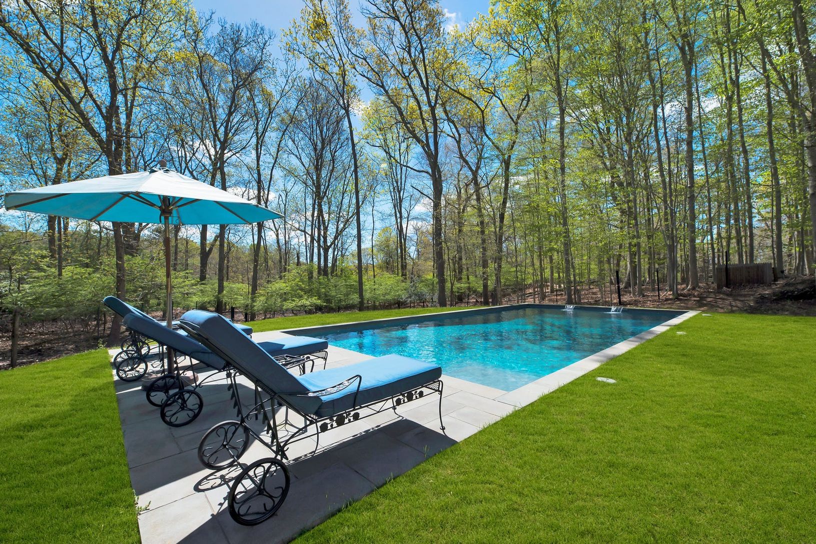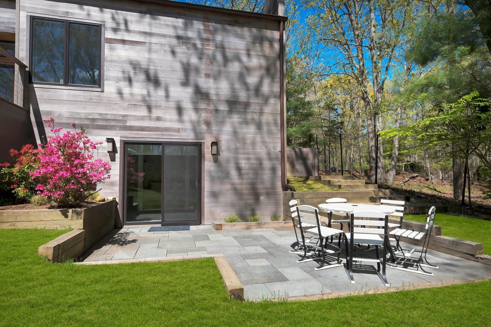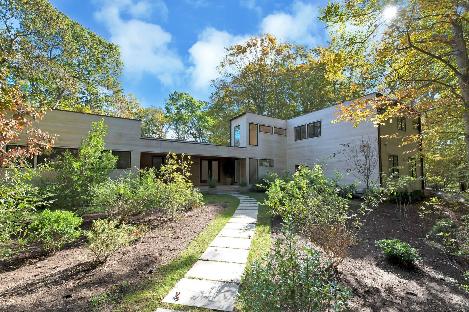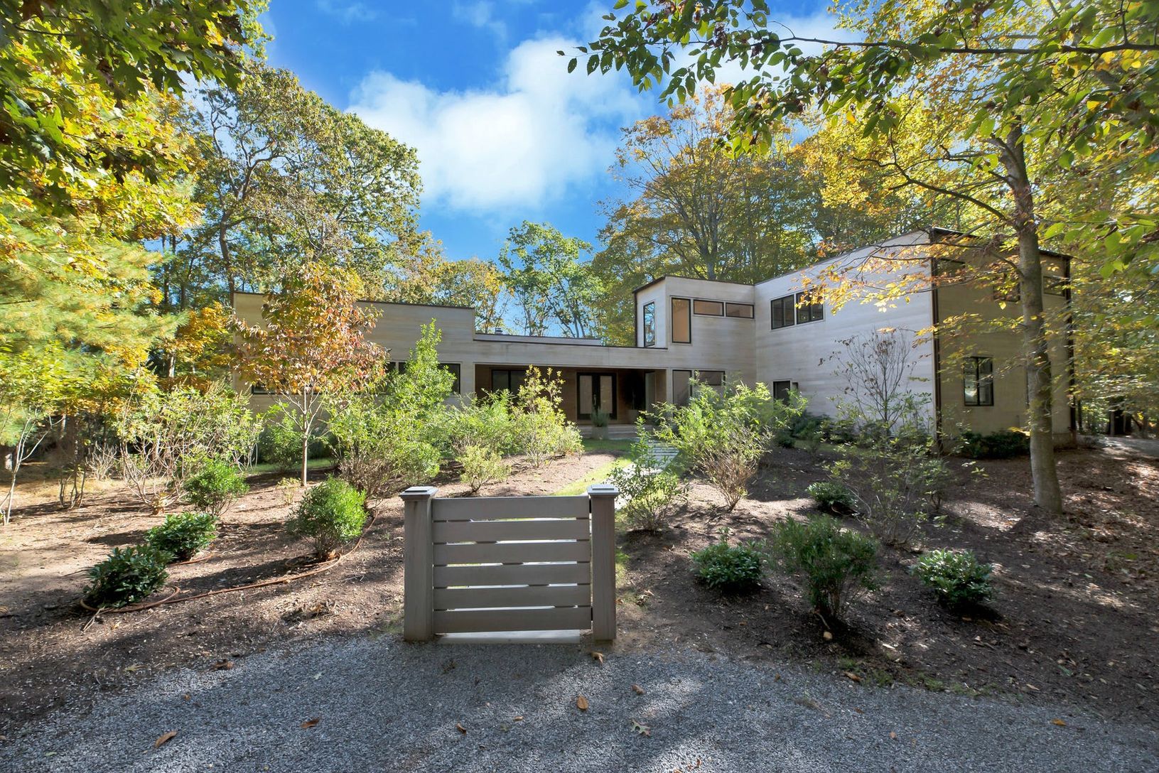 Minutes to the Village of East Hampton and ocean beaches, high in wooded terrain, sits this modern gem renovated top to bottom with first-rate components and a fresh aesthetic for the best of beach living. An incredible chef's kitchen with quartz countertops, granite island, and Thermador appliances opens to a high-ceilinged living area with a marble fireplace flanked by sliding doors leading to a mahogany deck overlooking a 20' x 40' gunite,