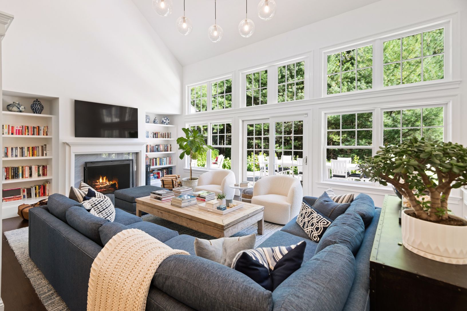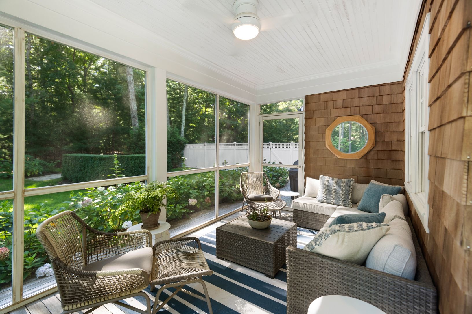 Just outside of East Hampton and Sag Harbor villages, a reward awaits in the form of this handsome 6 bedroom shingle style home on 1.6 professionally landscaped acres. Stylishly appointed with high end finishes, and meticulously cared for. Entering through the double height foyer, the main floor presents an open floor plan with soaring ceiling heights in the large living room, an eat-in chef's kitchen with adjacent casual dining area, a separa