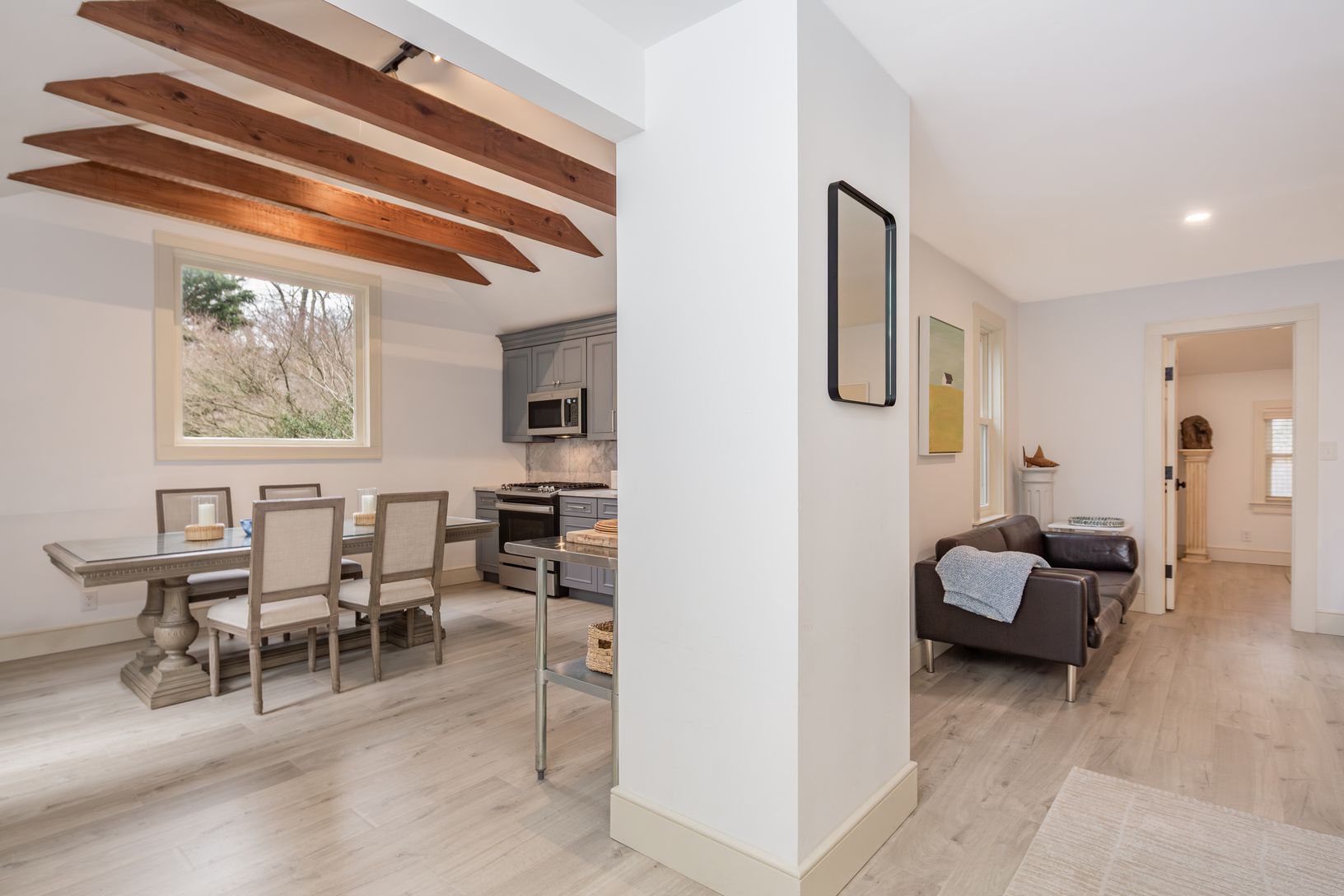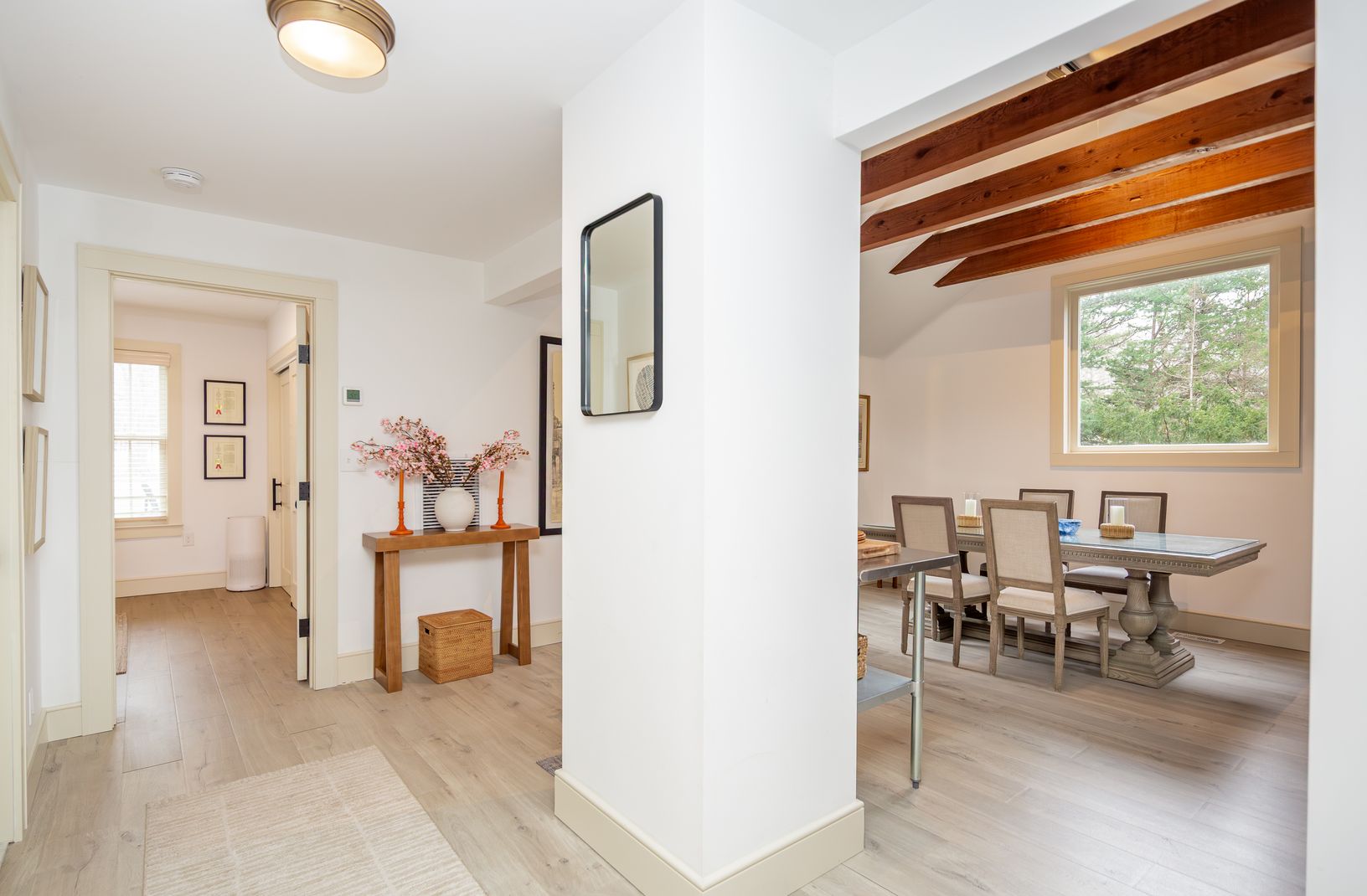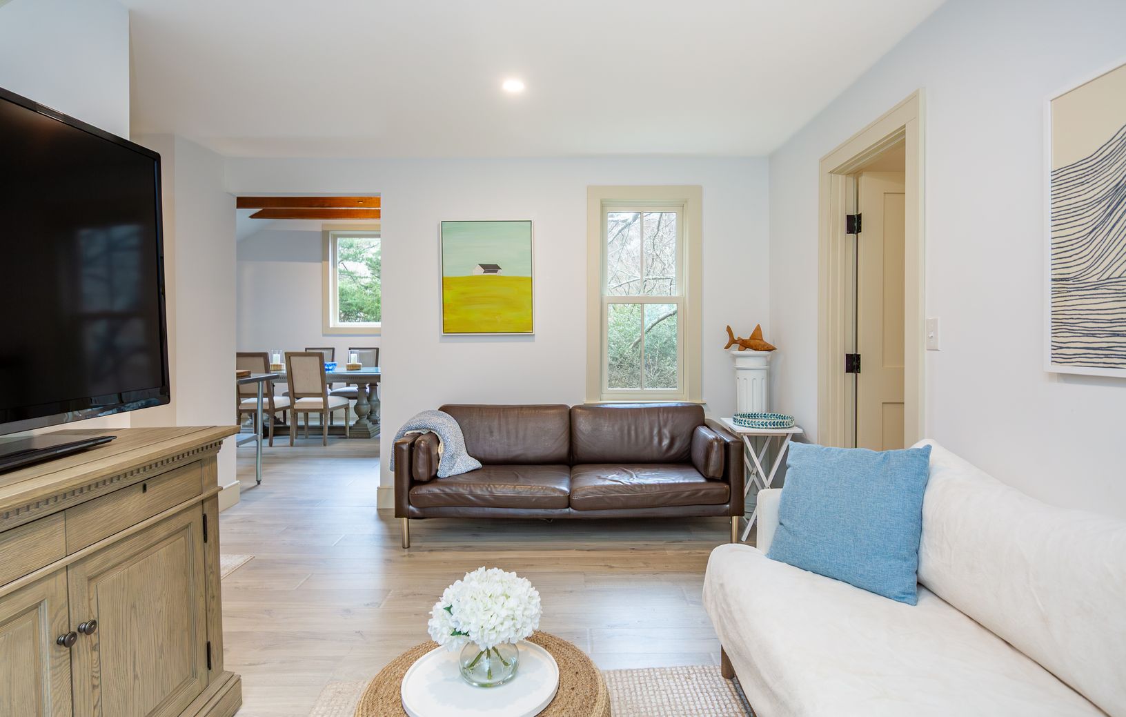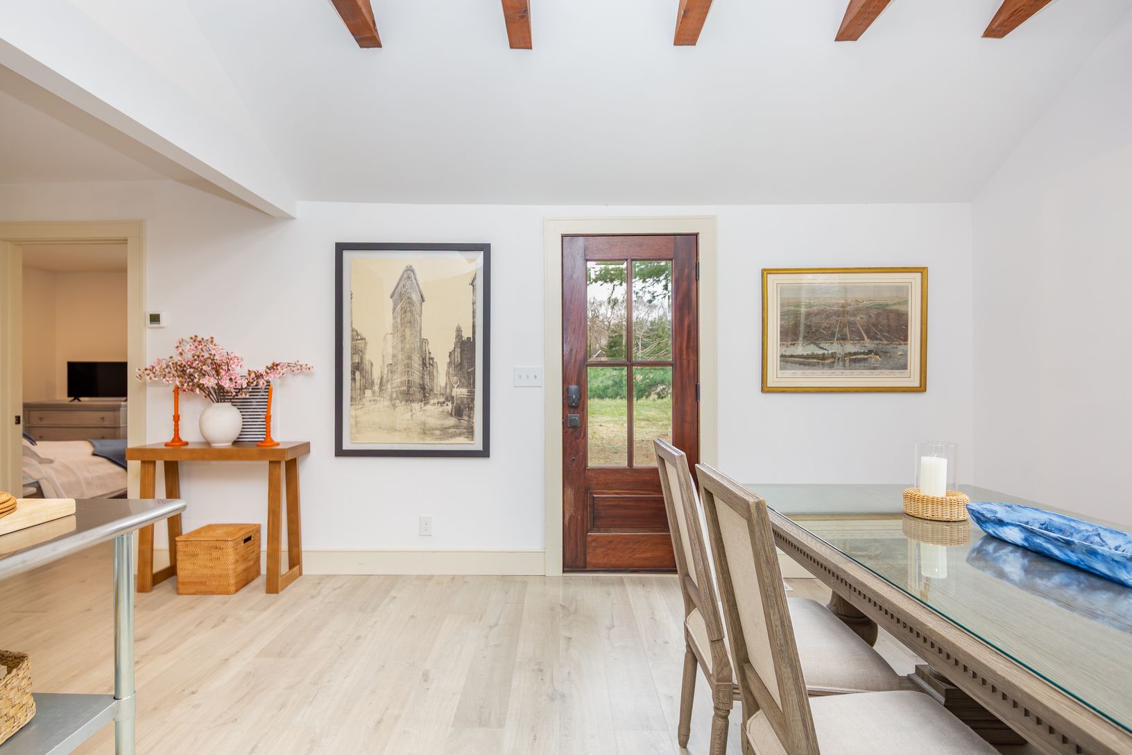 Set on just under two acres in the heart of Springs, this beautifully maintained three-bedroom, two-bath residence offers an effortless Hamptons summer framed by open meadow and natural grasses. Thoughtful architectural detailing, rich hardwood flooring, and abundant natural light create an inviting interior that feels both refined and relaxed. The open kitchen serves as the heart of the home-ideal for gathering, cookin