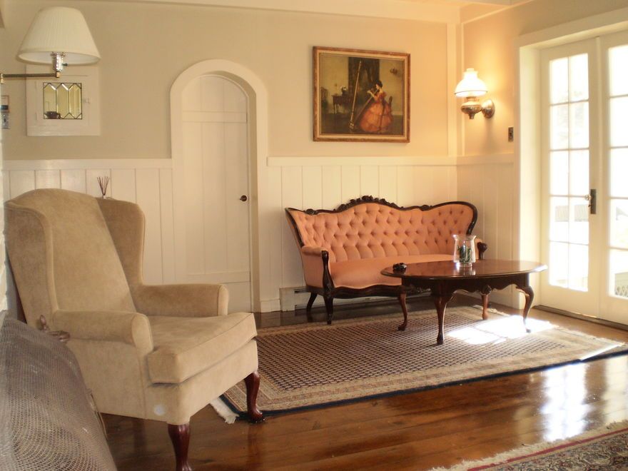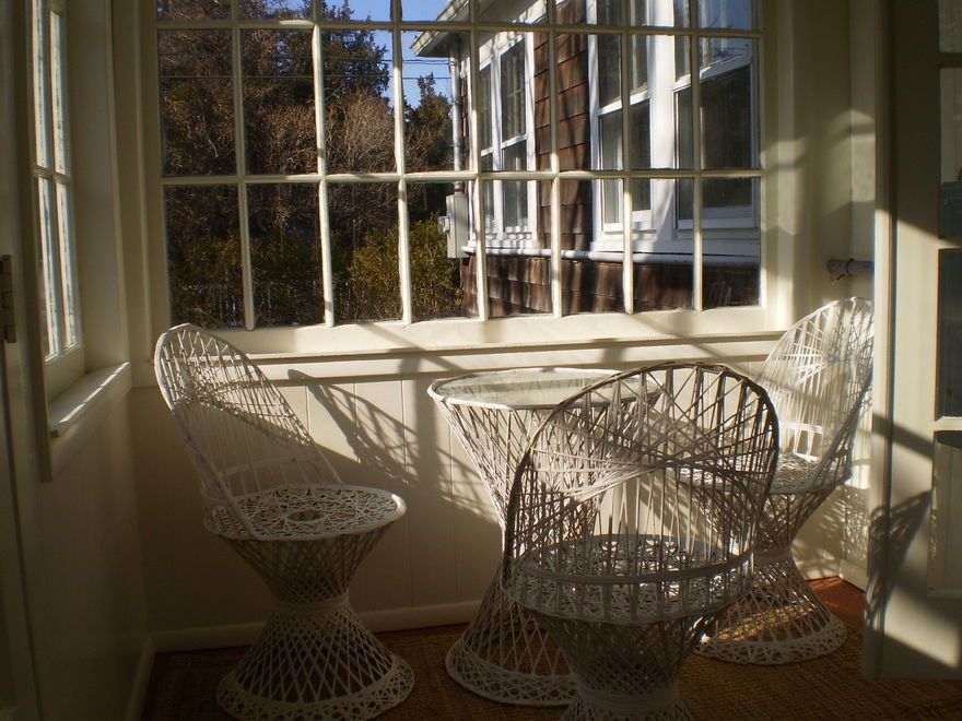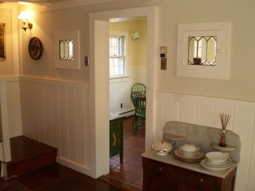 Located south of the highway near the open bay and about a mile and a half from the ocean. Circa 1900 home awash with charm and delightful details including wide board flooring, wainscoting, beamed ceilings, leaded glass windows and vintage light fixtures. All in mint, move-in condition. There is a large Living Room, an eat-in-Kitchen, Sunroom, Morning Room, 2 Bedrooms plus an office/3rd Bedroom. The park like property is graced with establish