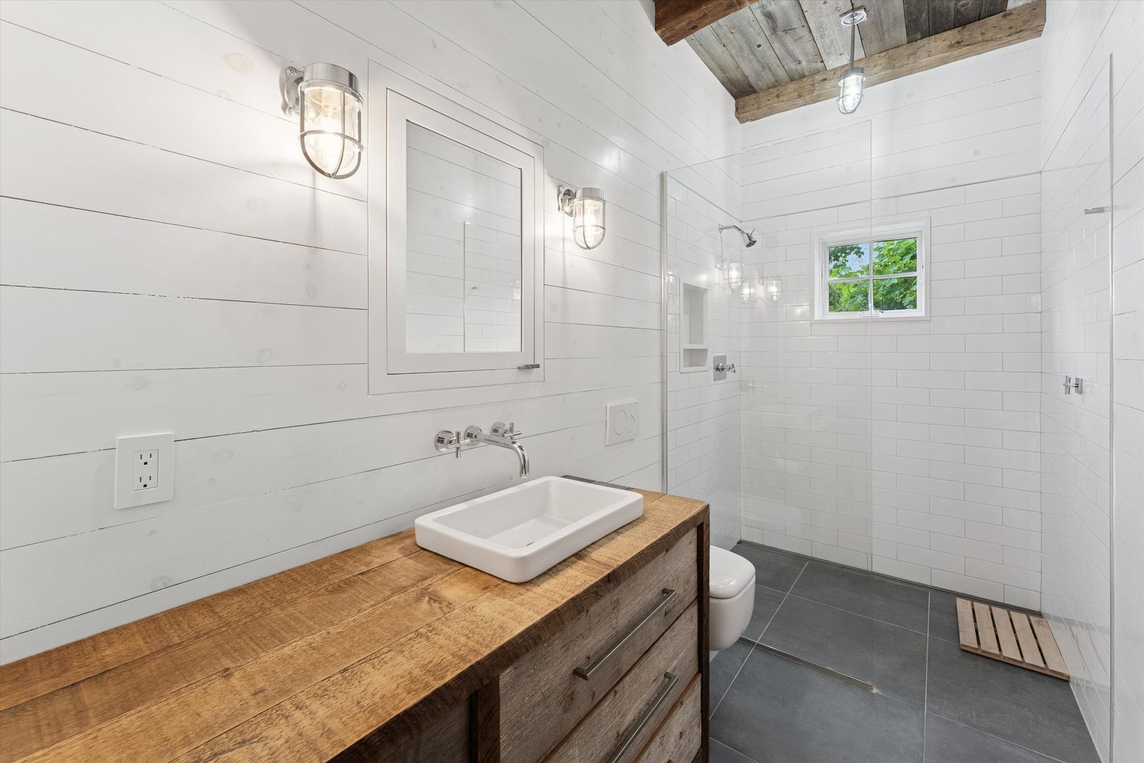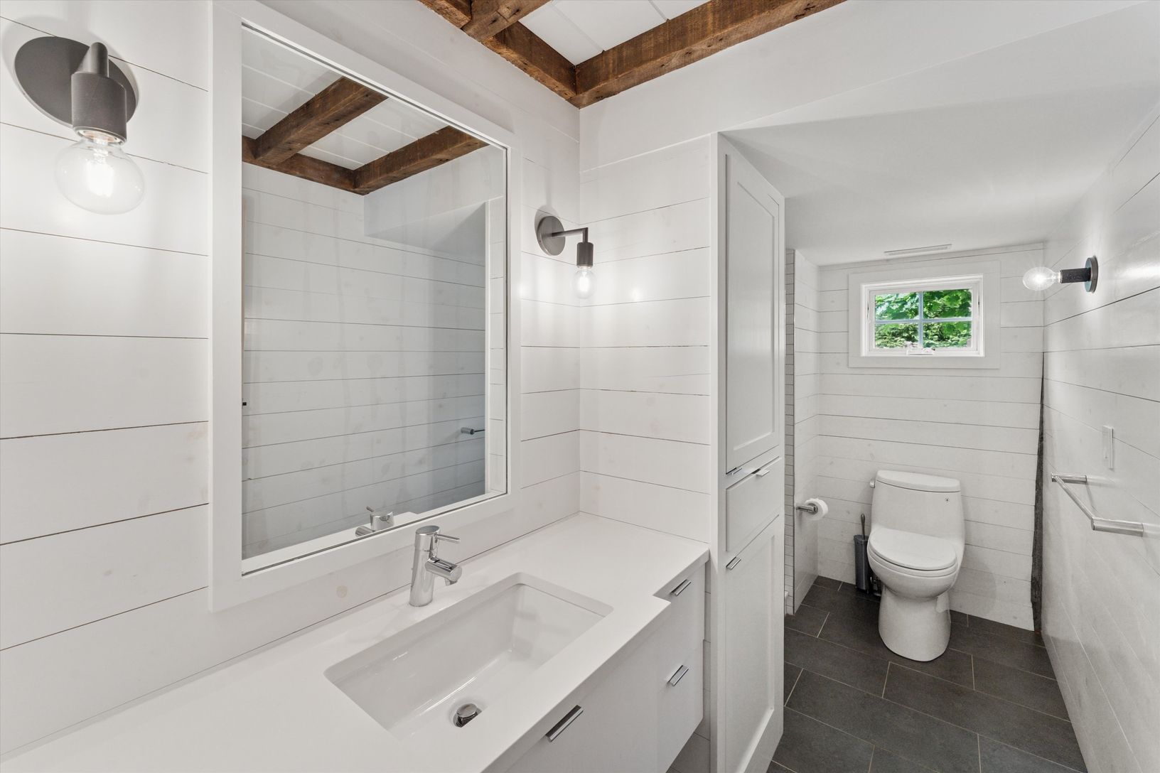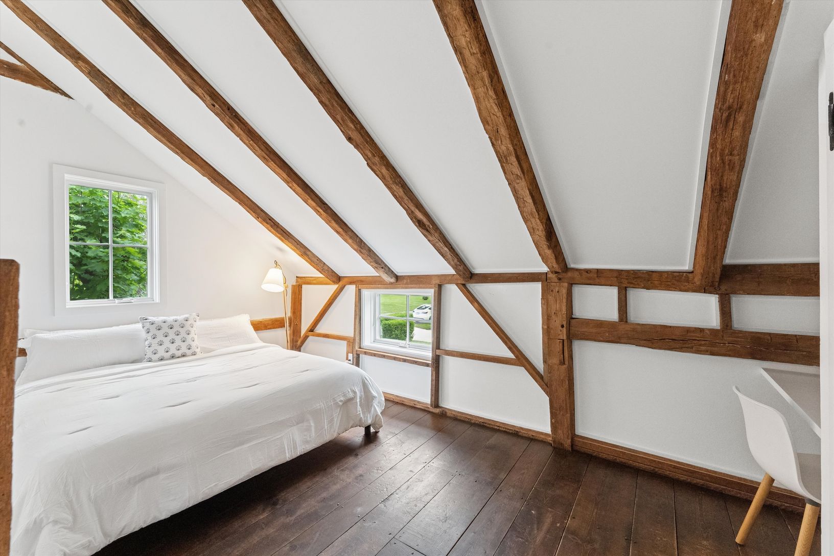 Located on just under an acre in the heart of Remsenburg, this beautifully restored 4-bedroom, 2.5-bath farmhouse blends historic charm with modern upgrades throughout. Originally a 1760s barn, the home retains its character with original wood beams, hardwood floors, and vaulted ceilings, while offering the comfort and convenience of updated systems, fixtures, and finishes.
