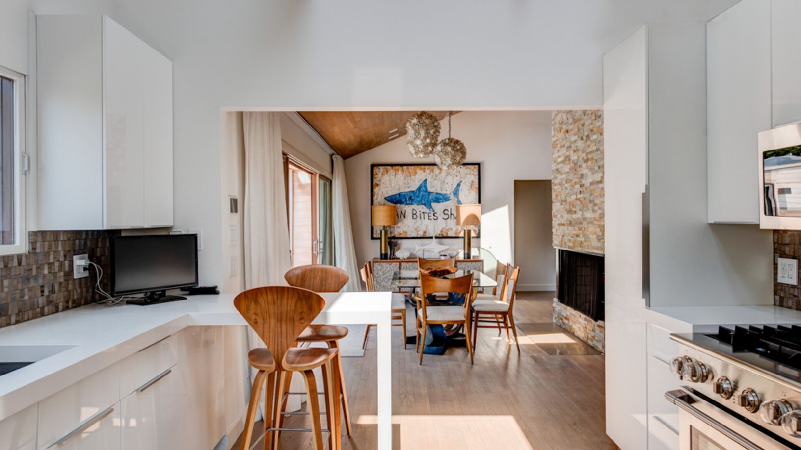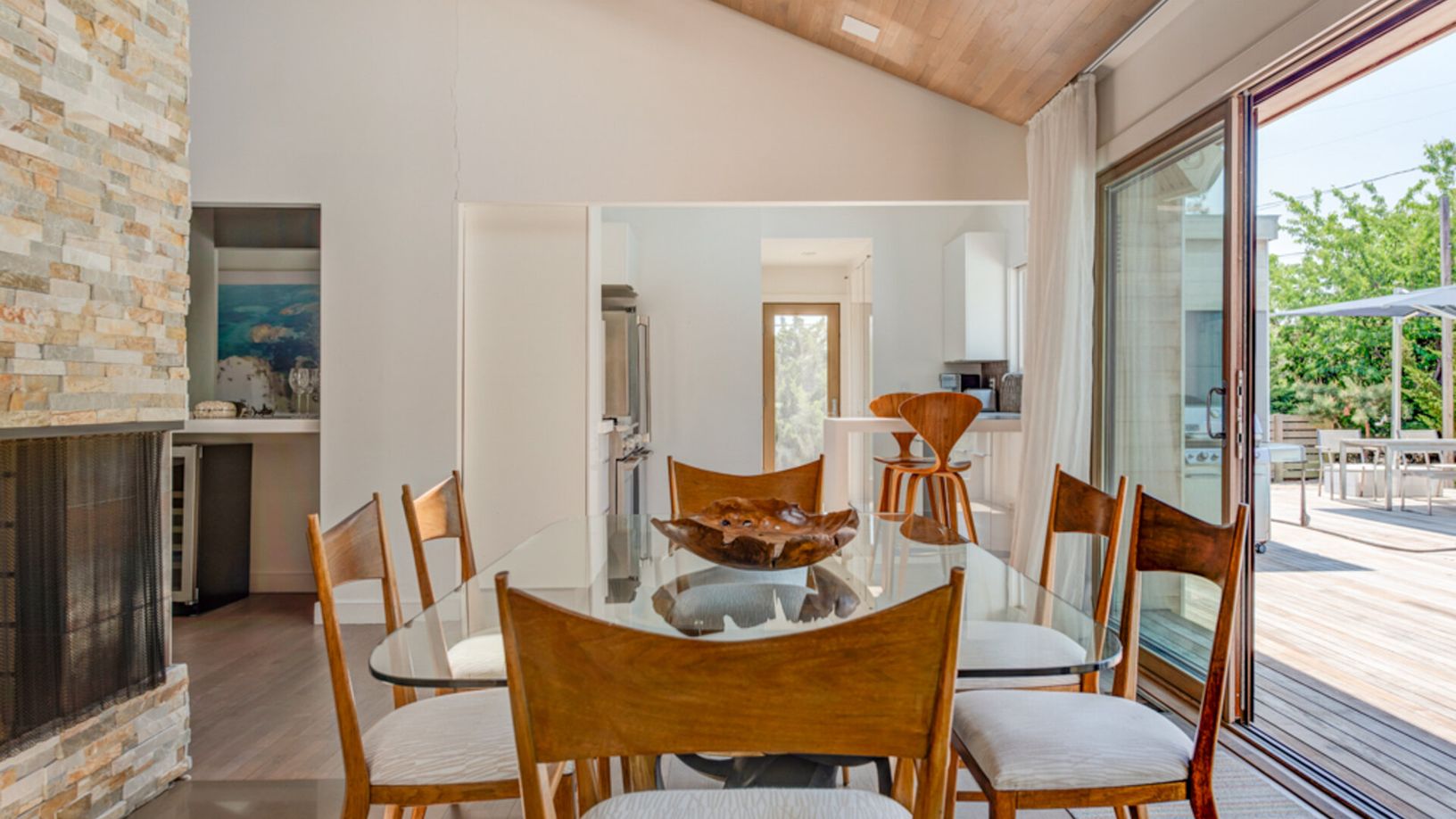 This marvelous coastal-style home, located one block away from the stunning Amagansett beach, is a wonderful getaway destination for friends and/or family of all ages. The main level is designed so that movement and communication between the space is seamless, as there is a completely open-floor plan. The only separating