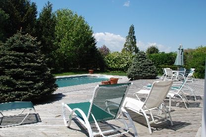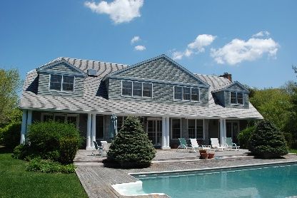 Dune Alpin Farm sits on a major land mass just outside of East Hampton Village. This free-standing home has over a half acre of land but enjoys the spacious feel of the larger community where it is possible to stroll, bike ride or play tennis. There is a large master suite upstairs with its own fireplace and office alcove and a junior suite on the first floor. Two other guest rooms are set in their own upstairs wing of the house with a larg