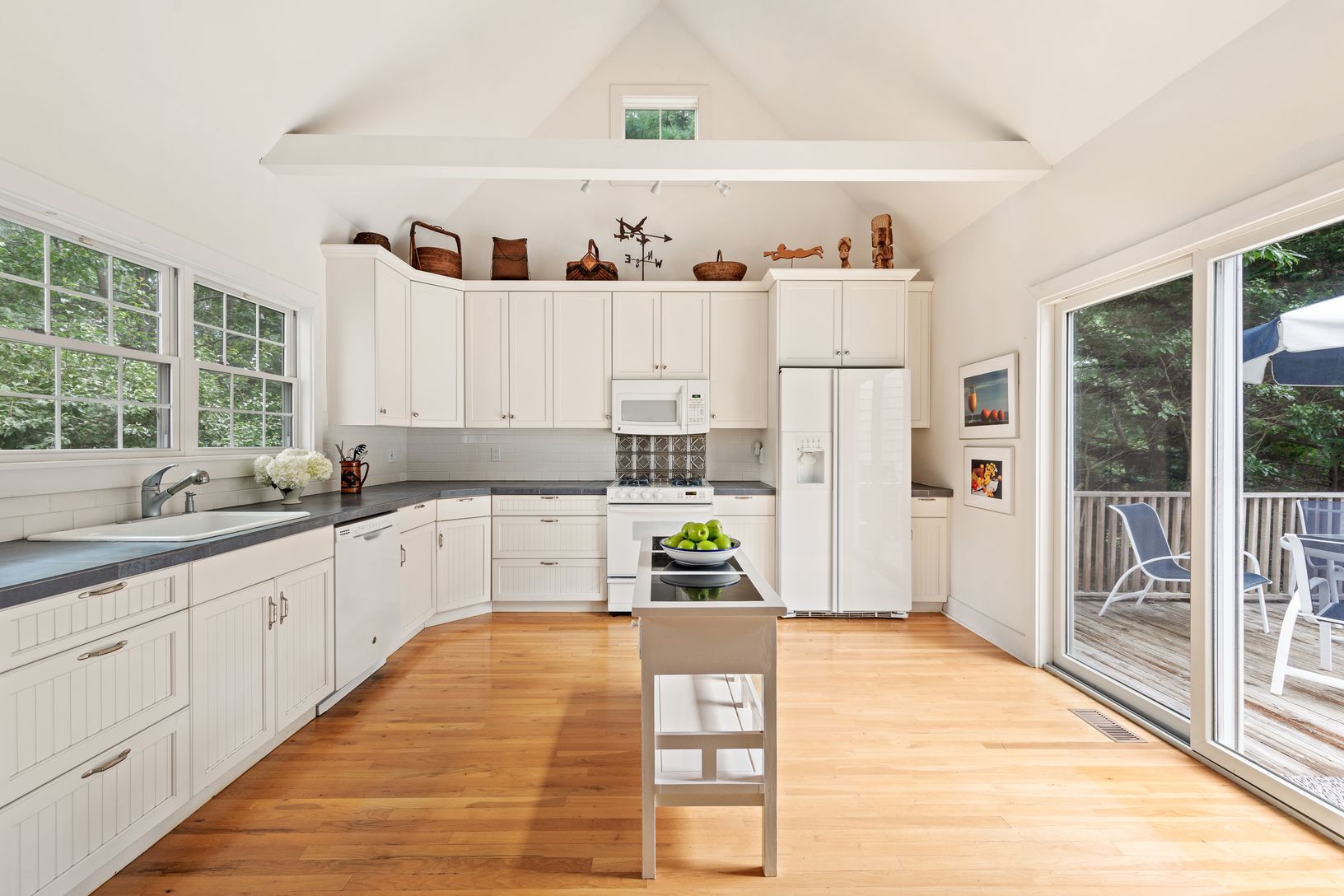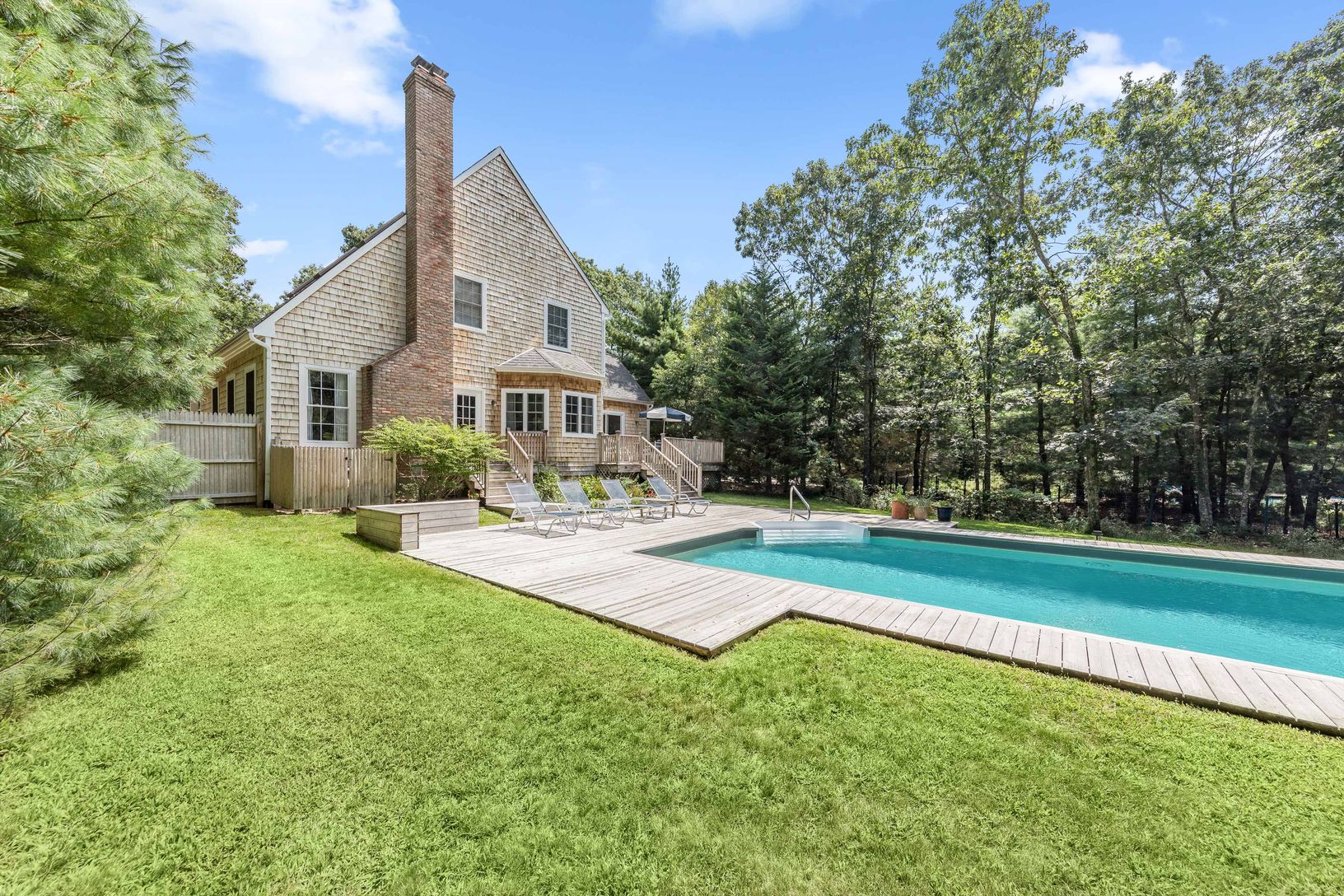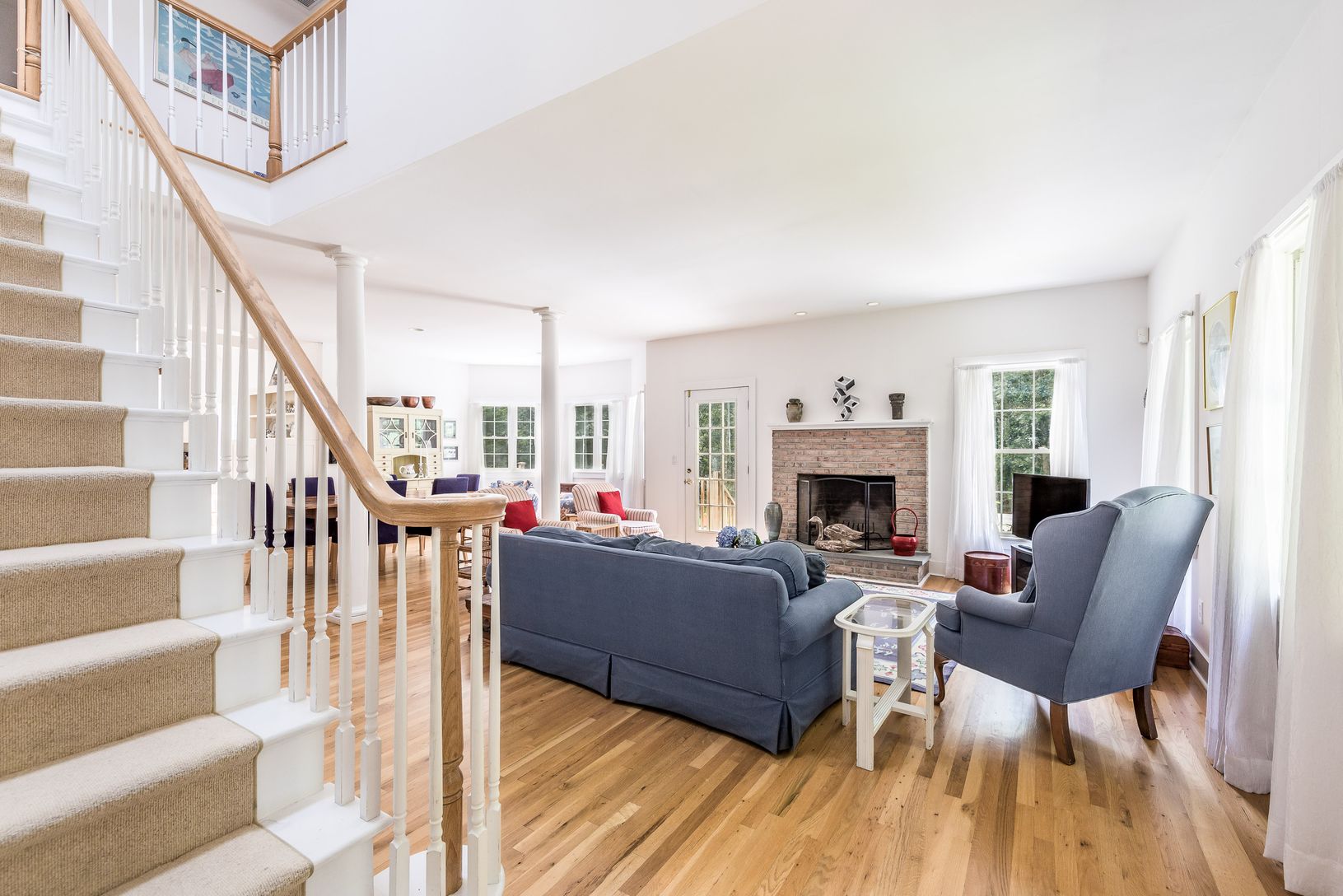 Hidden off of a quiet street on the fringe of East Hampton Village, this turn-key four bedroom and three full/one half bath home is ready for you to enjoy. The interior is welcoming with an entry foyer leading into an open floor plan with living room, dining and a large kitchen with plenty of storage. There are two master suites - one on the main level with a whirlpool tub and one on the second floor. Upstairs are two additional sunny guest be