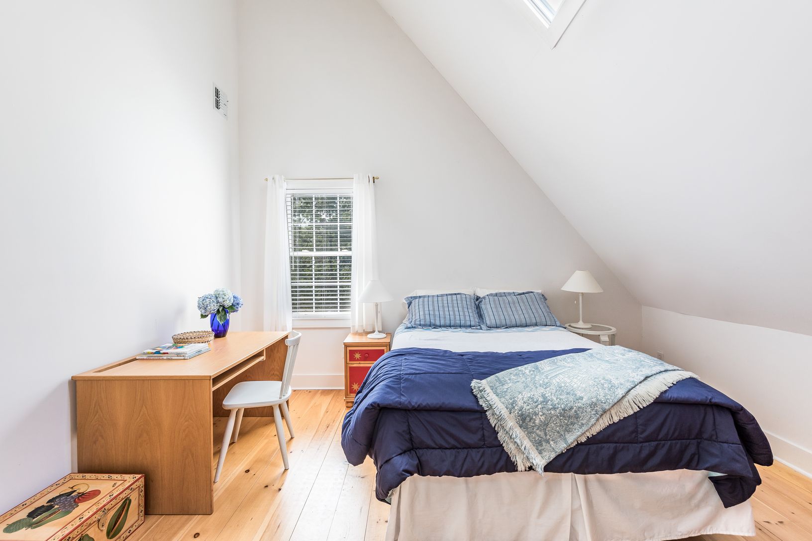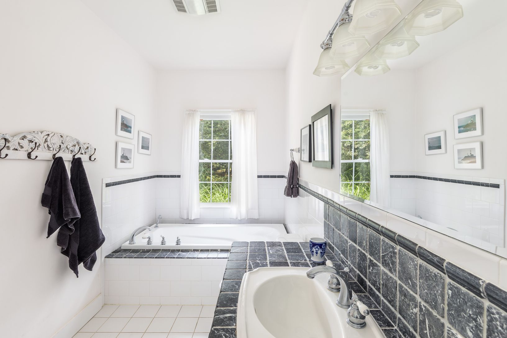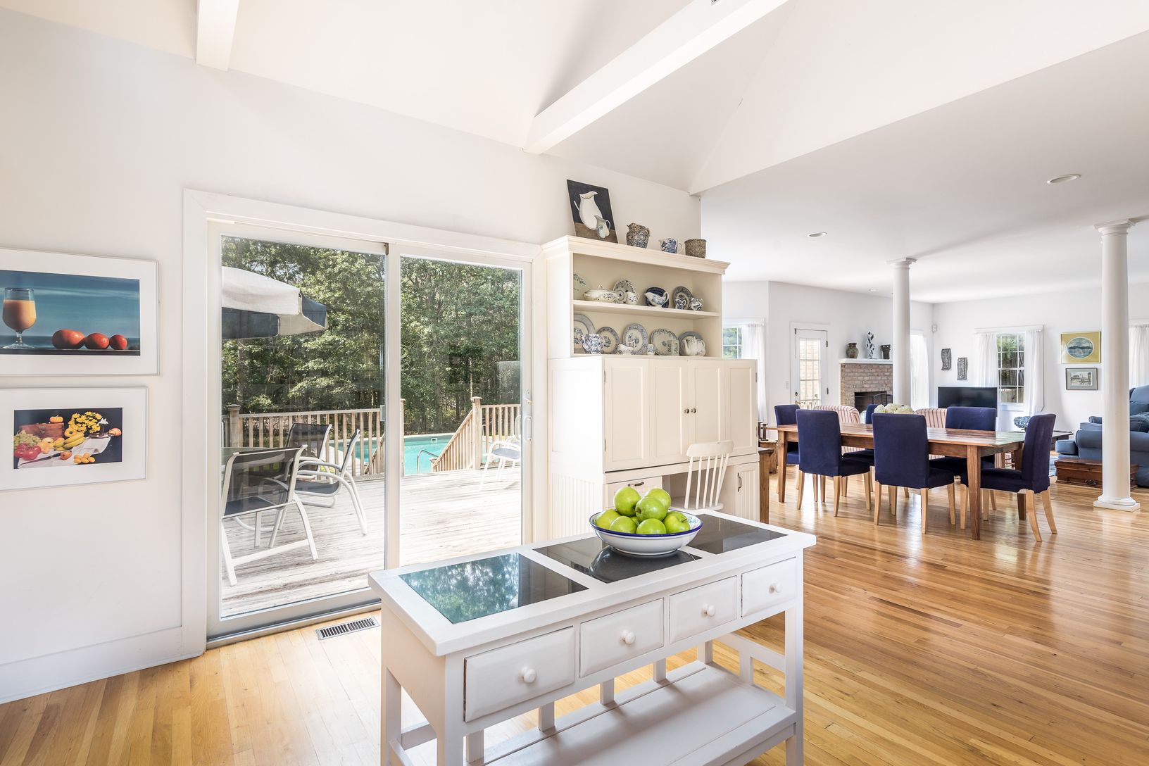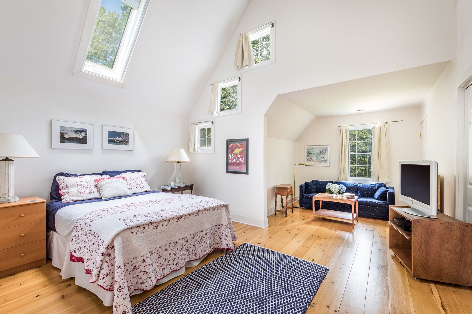 Hidden off of a quiet street on the fringe of East Hampton Village, this turn-key four bedroom and three full/one half bath home is ready for you to enjoy. The interior is welcoming with an entry foyer leading into an open floor plan with living room, dining and a large kitchen with plenty of storage. There are two master suites - one on the main level with a whirlpool tub and one on the second floor. Upstairs are two additional sunny guest be