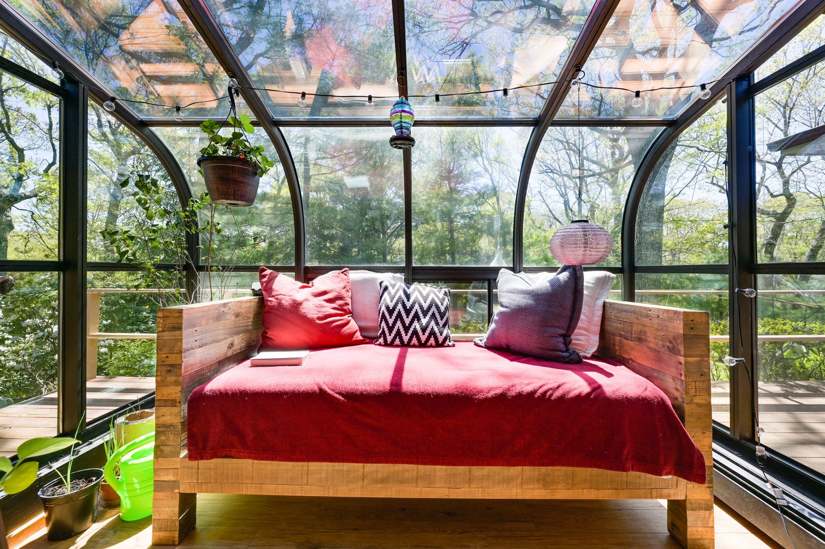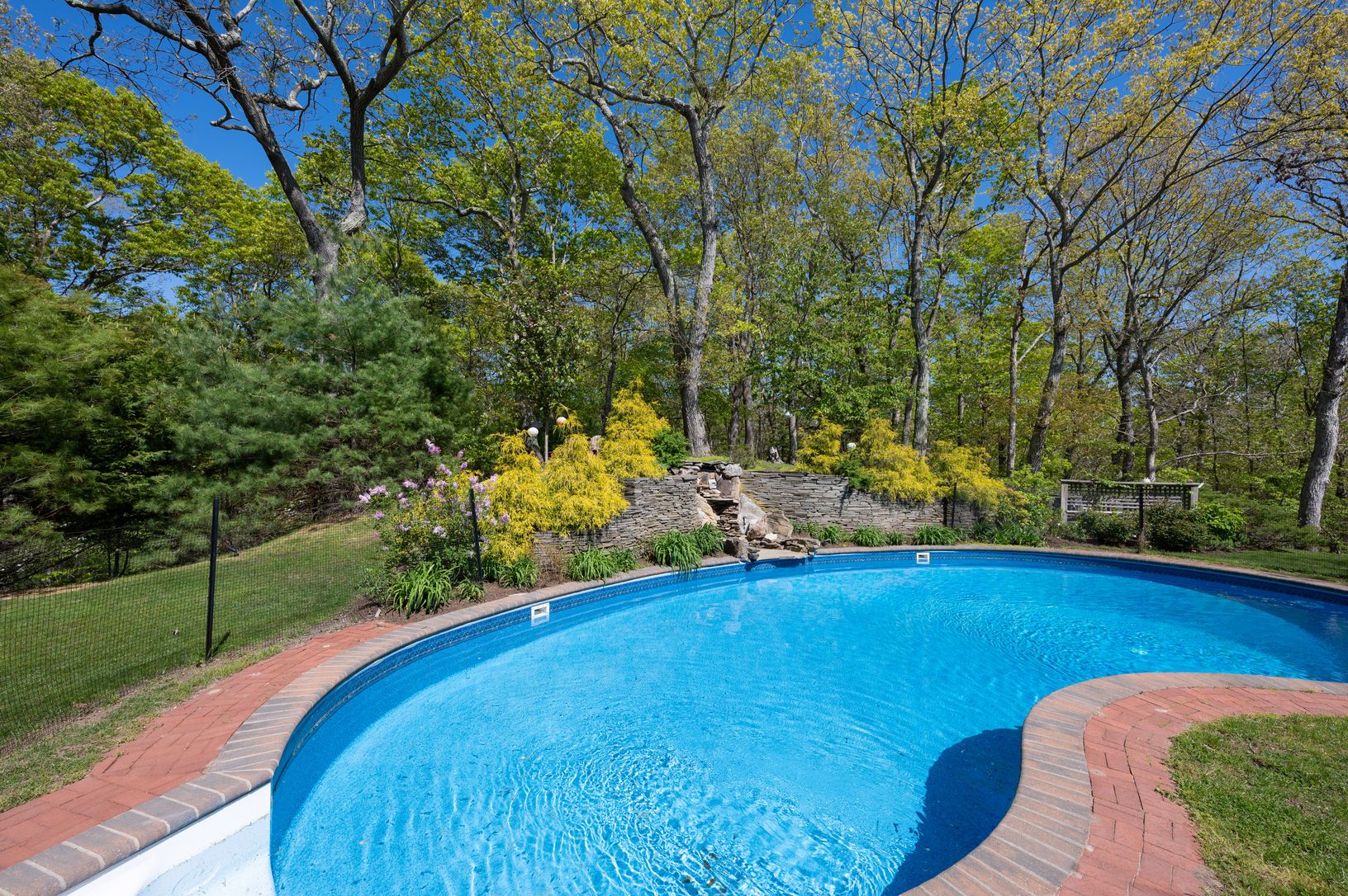 Designed for summer enjoyment, the expansive outdoor area features multiple seating zones, hammocks, swings, a jacuzzi, a large heated pool with a waterfall, an outdoor shower, and Sonos speakers for effortless entertaining.