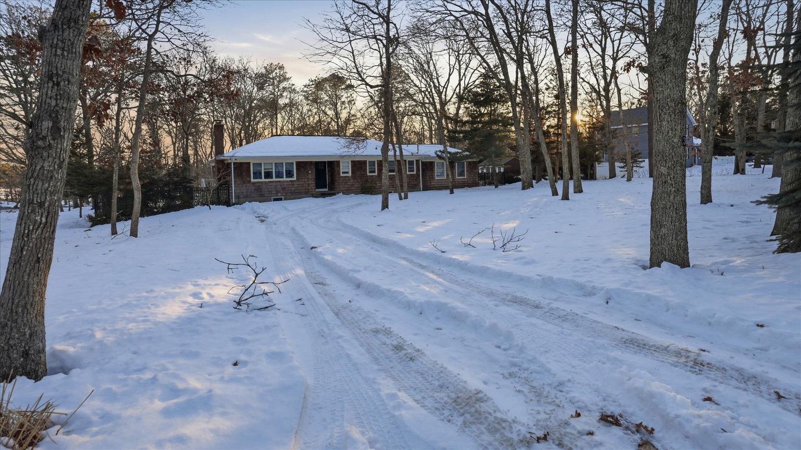 Welcome to 3 Robins Nest Lane, nestled in the heart of Hampton Bays, in the private and exclusive enclave of Red Cedar Point Association. This single-level home boasts four bedrooms and two full bathrooms, and is ideal for both easy entertaining and well-deserved relaxation! The property's unique design features a spacious Primary Ensuite Bedroom, featuring a wall of sliders and a private deck, leading to the heated pool and the great outdoors