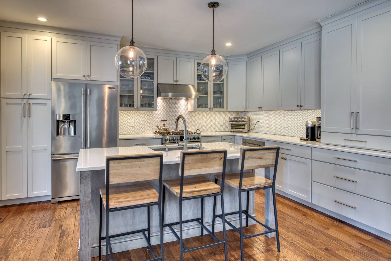 This gorgeous four bedroom, three bath home offers an open floor plan, wood floors throughout, master suite and two additional bedrooms on main level. The living room with fireplace flows to the gorgeous kitchen and separate dining room. There is a full finished basement with an additional bedroom, media room, gym, ping pong table and separate office with pull out couch which could be used as a fifth bedroom. With plenty of light streaming