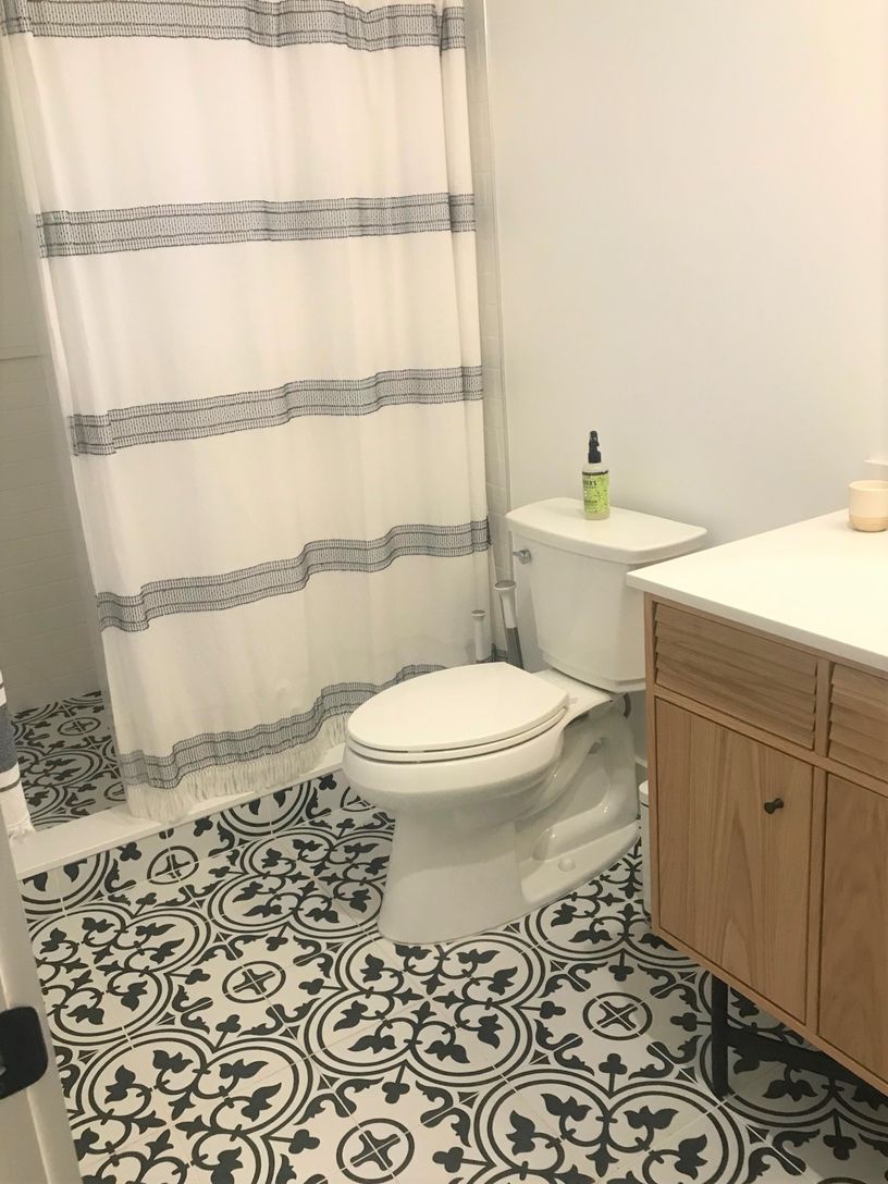 Floors: Hardwood, Tile