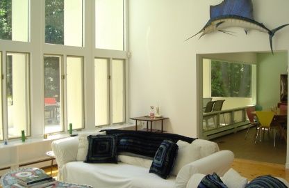 Up the driveway high above the road on 1.4 acres sits this timeless Modern gem. Designed by Architect Donald Chapell this house has 4 Bedrooms,3 Baths and is flooded with light. The view from the double height living room with light wide Pine floorboards, stone fireplace and enormous oversized windows is amazing! By design, this house communicates with the surrounding beauty of nature. There is a view from every bedroom balcony. Freshly paint