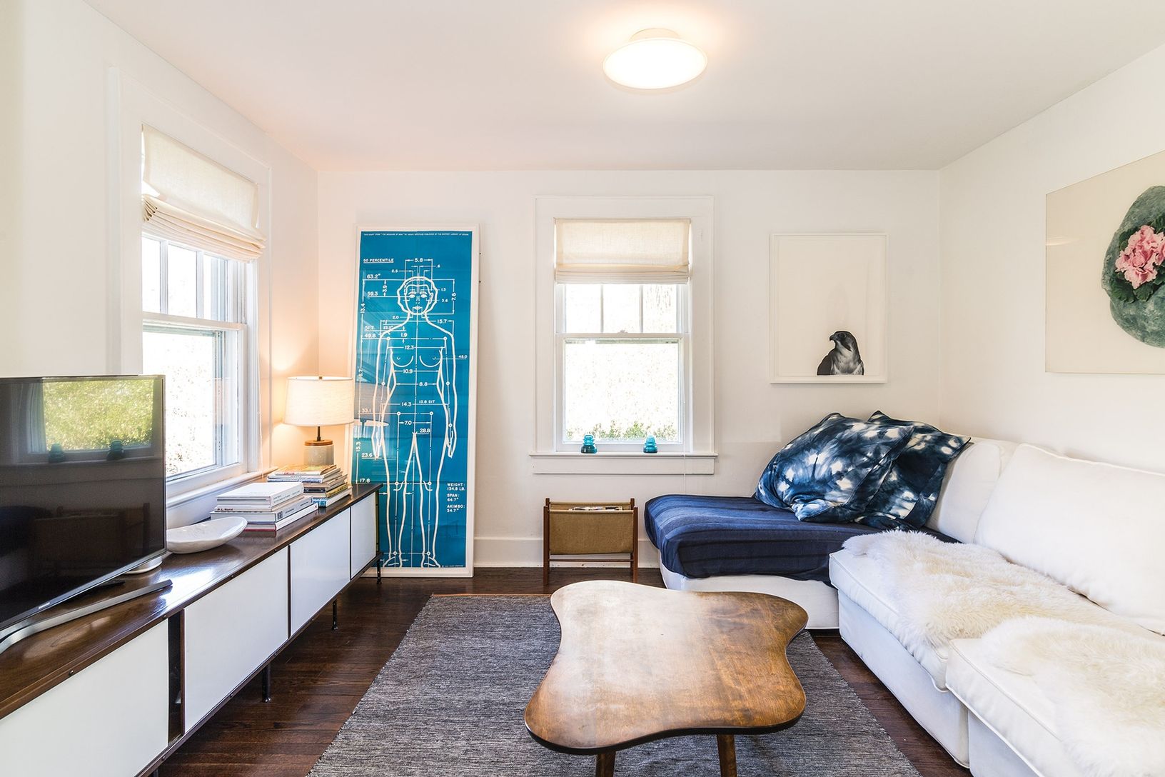 Located a stone's throw from popular Crescent Beach, this 1930's Cape Cod cottage has been transformed by its designer owners to a luxuriously laid back retreat. Open the gate where a path leads to the front veranda and front Dutch door entry. The floor plan is extremely efficient and malleable. The sun-filled living room offers natural light reflecting off white walls, ceilings and exposed beams. A sitting room is just off the living room wit