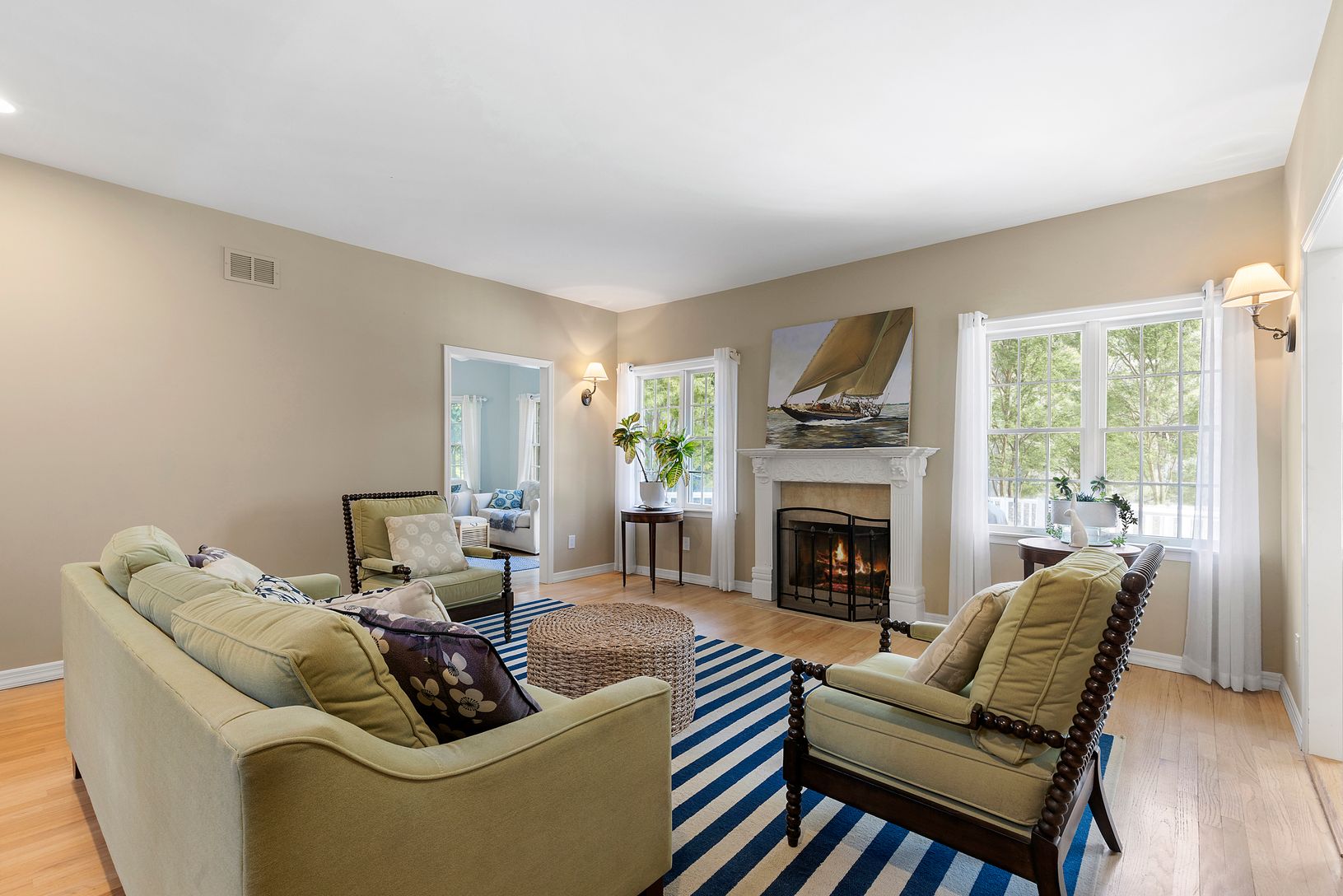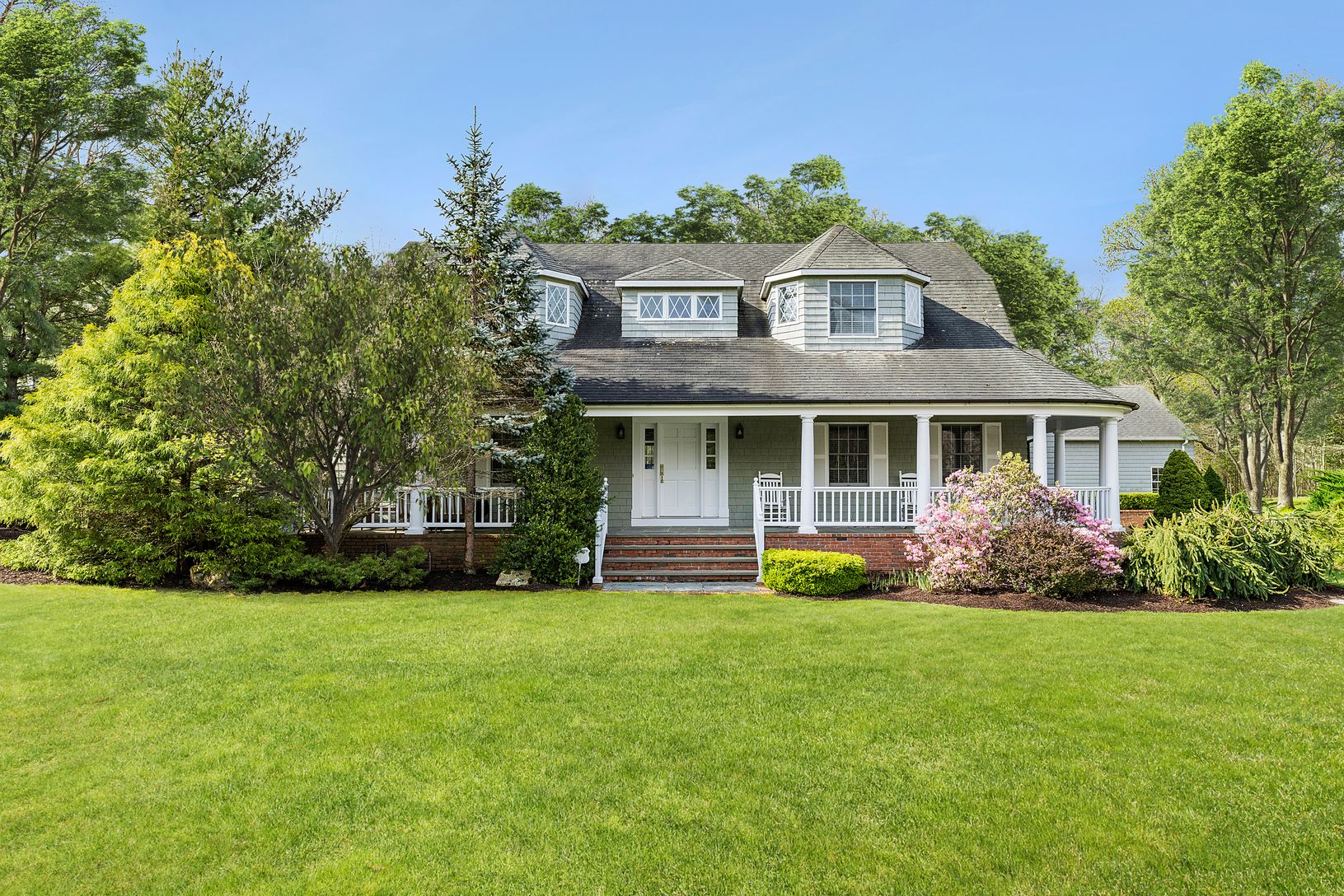 Introducing a custom traditional on .61 acres in a quiet waterfront community in Noyac, Sag Harbor with a private clubhouse, marina, hiking trails and beach access. With charming curb appeal and a wraparound covered front porch, a double-height foyer leads to the living room with fireplace, dining room, den, eat-in kitchen with a walk-in pantry, powder room, laundry, and the primary suite. Upstairs, an oversized sitting room separates 4 guest