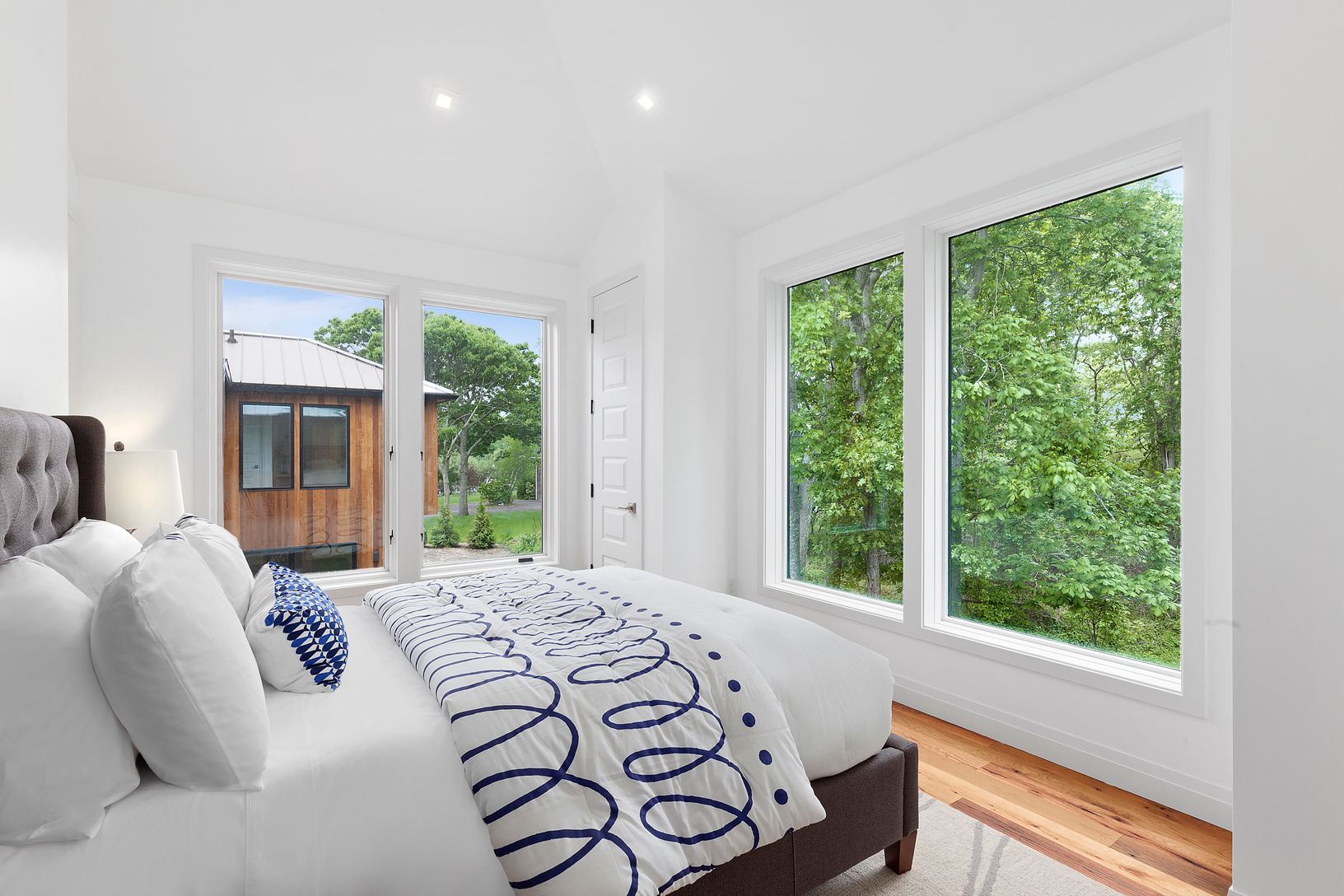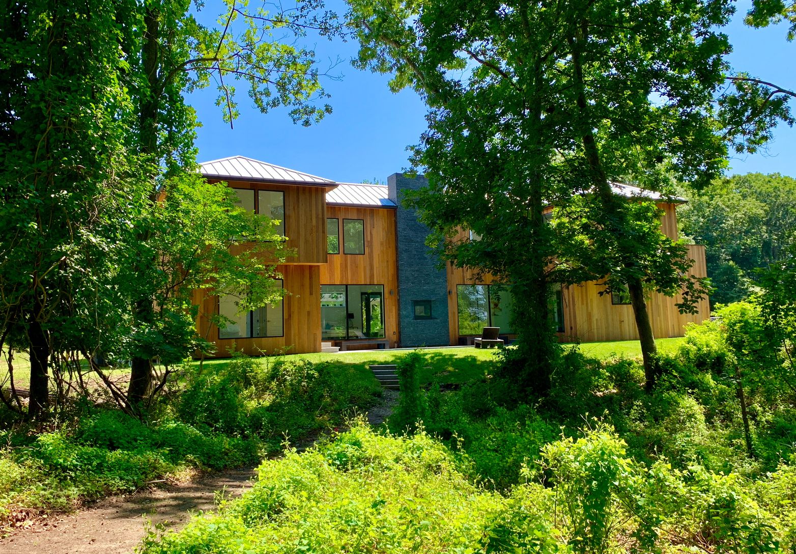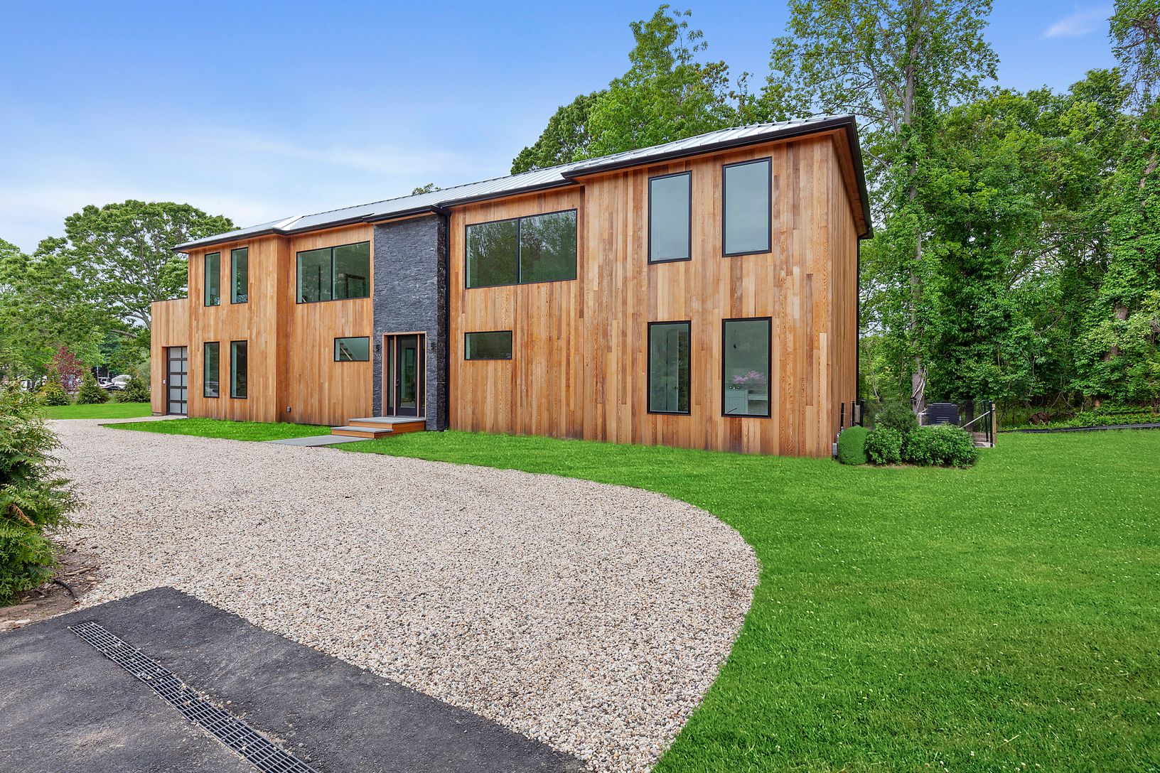 Brand new construction ! This custom four bedroom, four and a half bath home is situated on more than one +/- acre features a modern barn style exterior with vertical red cedar plank, metal roof and many additional green features throughout. The main floor offers soaring 30' ceilings, double height windows, powder room, large open great room with glass enclosed fireplace that is open to the outdoor patio as well, Gourmet Chef's Kitchen with Vi