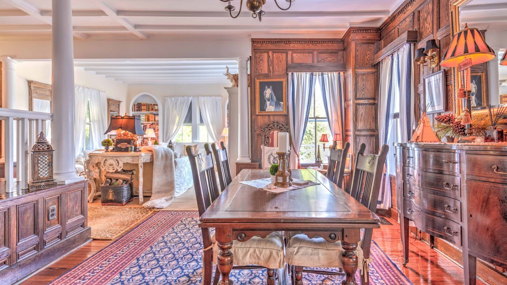 This home features five bedrooms, four and a half baths, and a traditional livi