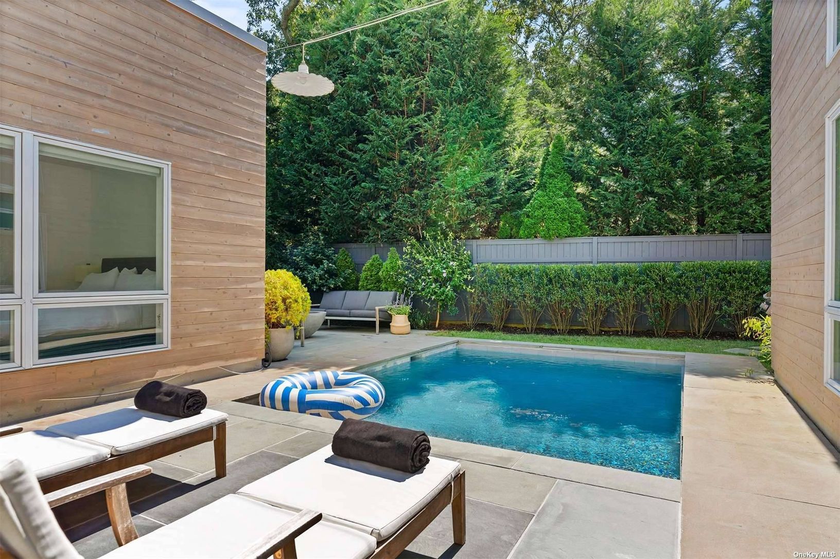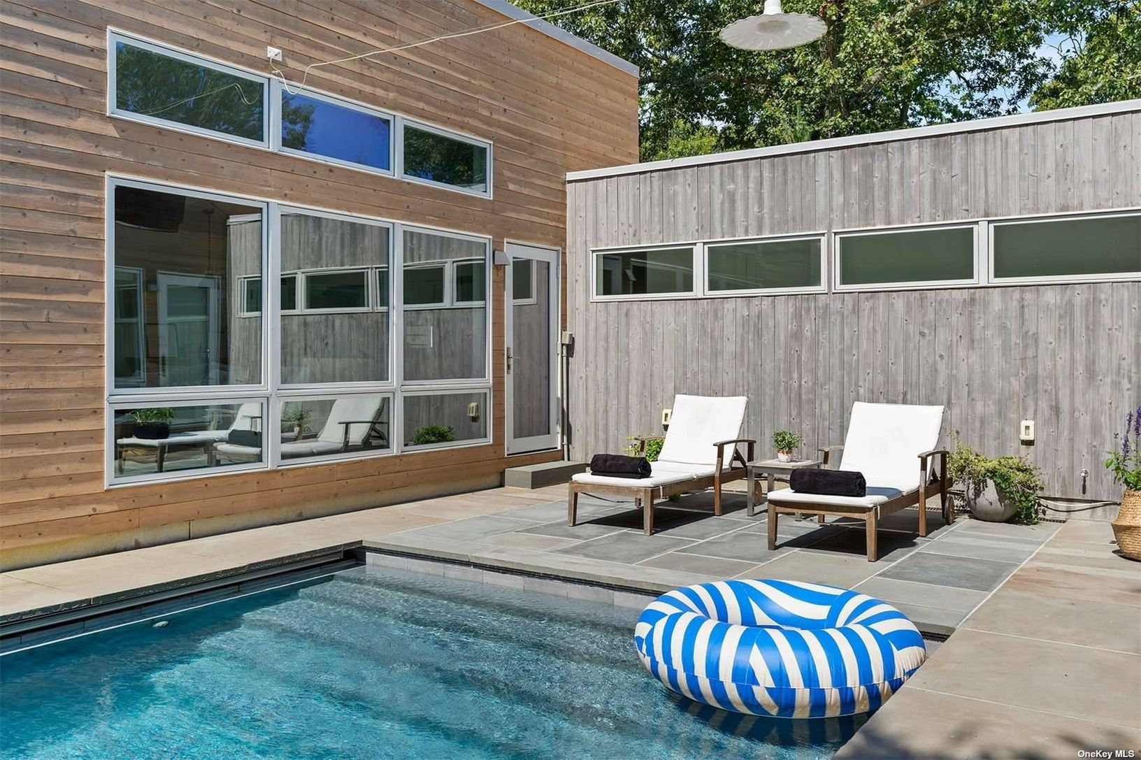 Modern Courtyard House available for sale in the beach community of Pine Neck, Sag Harbor. Built in 2019, with significant upgrades added, this light-filled, 4-bedroom, 3.5 bath home is purposely designed by Craig Rhodes, Registered Architect, and concepted around a sunny central courtyard and constructed on-site with highly efficient SIP modular panels with a standing seam metal roof and Pella windows and doors. The 2020 addition of a 17'x 11