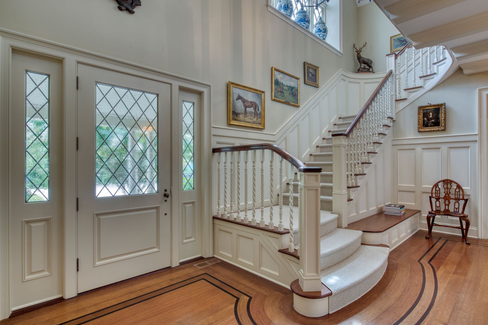 Nestled south of the highway in East Hampton Village's coveted Georgica Estate Section, this exceptional 2.5± acre property combines timeless architecture with serene natural surroundings. Designed by architect Greg Zwirko, built by Pat Trunzo, and landscaped by Edmund Hollander, the home enjoys water views of Georgica Cove and is framed by pristine reserve land. With approximately 7,280 square feet of living space, the Queen Anne Revival-styl