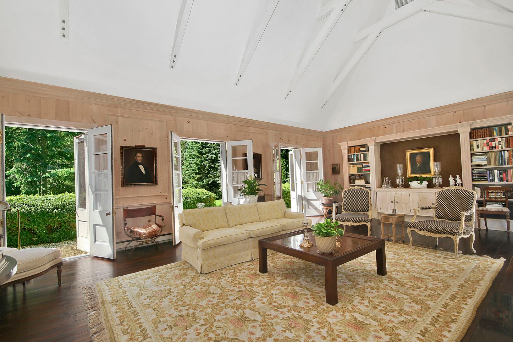 Drawing inspiration from the French film "La Femme Infidele," architect Edward W. Slater created a classic gentilhommiere, which he defined as "a country house belonging to nobles who followed the king's taste but were not of royalty". In building the two-story house in the shape of a modified u, the architect created a classical symmetry that allows the outside living area to be incorporated into the site plan. Among the many stylish design e