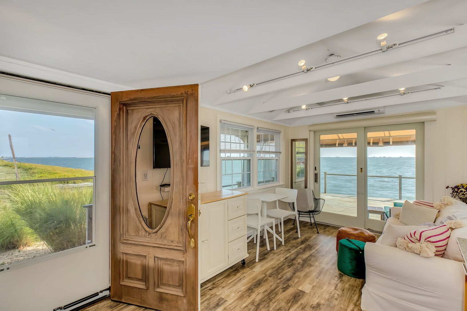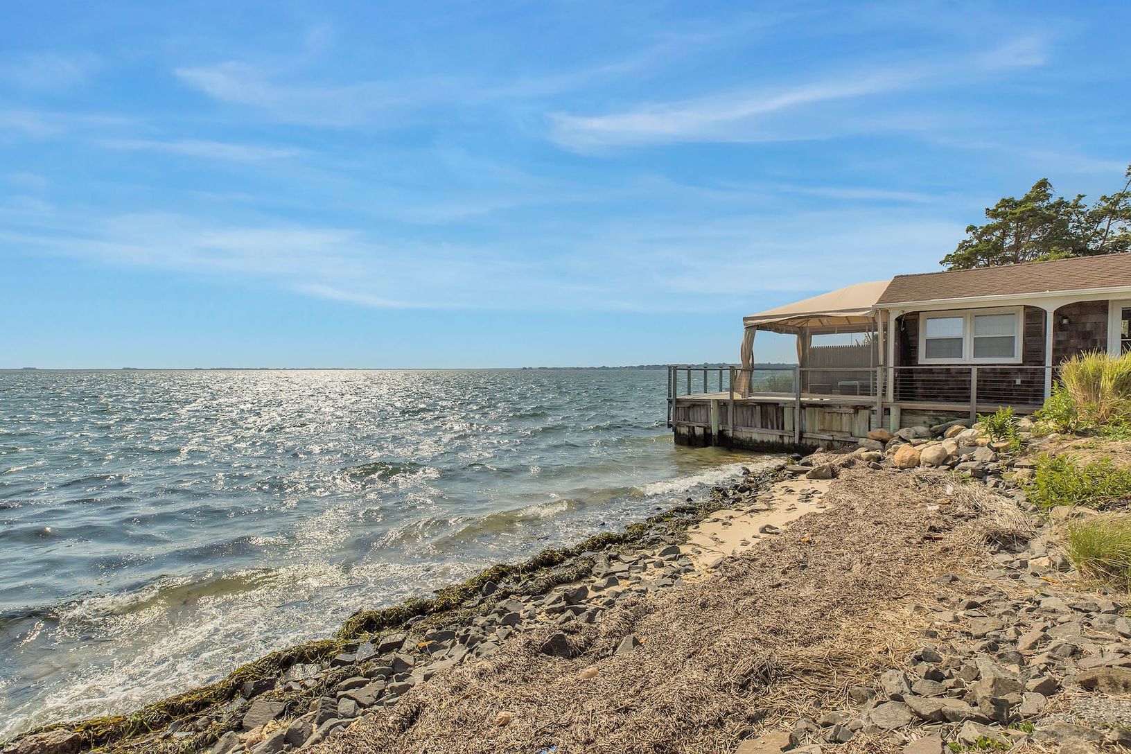 Bayfront living without the expensive price tag. This shabby chic cottage sits right on Shinnecock Bay with endless views. Fish, swim, paddle board, and kayak right at your own private oasis. Watch amazing sunrises and sunsets from your beautiful deck or screened in porch. Or relax inside your open floor plan cottage with tastefully furnished living room, bright kitchen and primary suite with updated bathroom. You won't want to miss this amazi