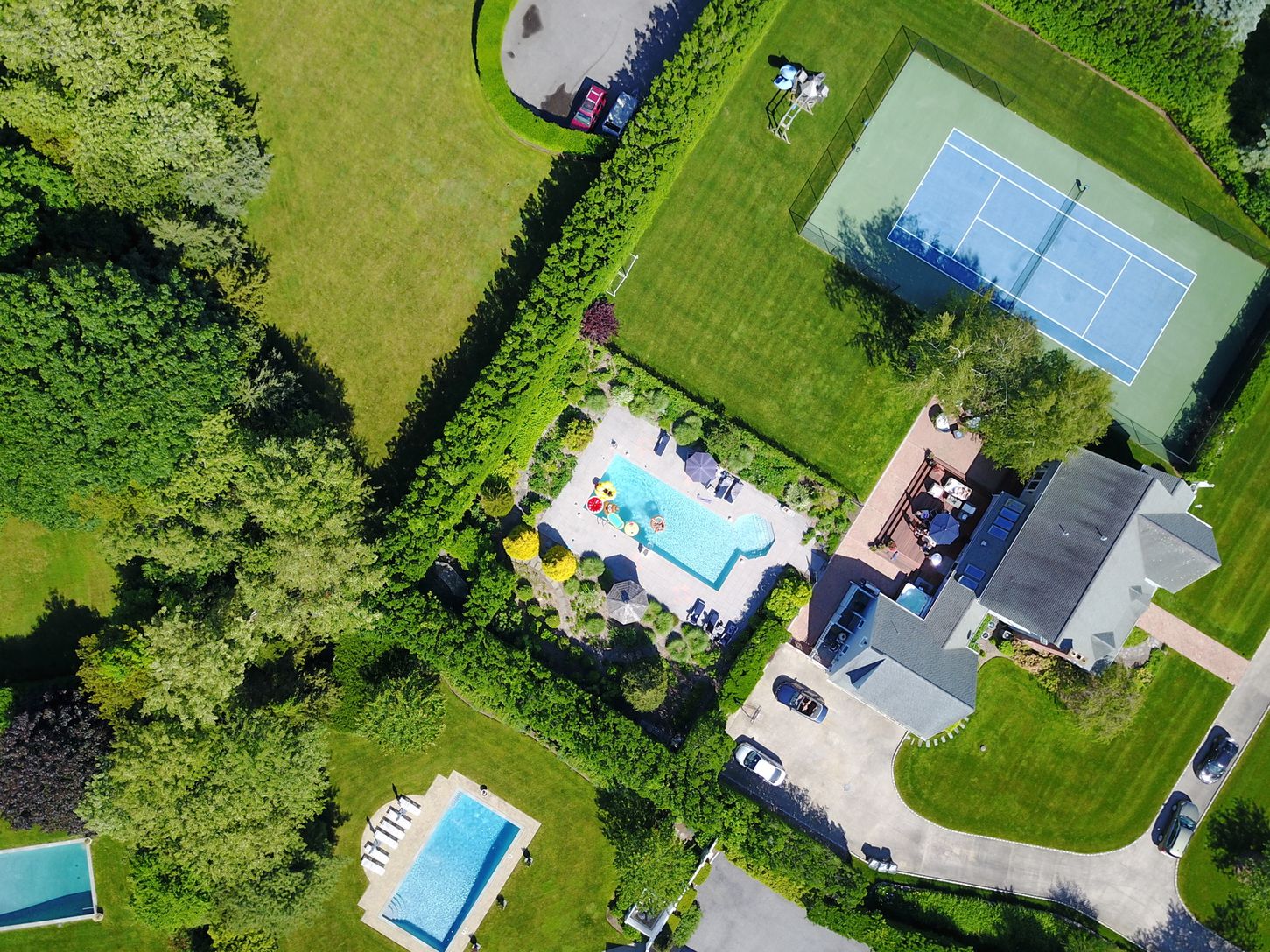 Hampton's Hamlet Water Mill; this pristine light filled home has it all. Located in Water Mill Village adjacent to Vineyards and the Parrish Art Museum, this spacious updated home has 5 bedrooms and 6.5 baths with bonus rooms on the lower level and third floor mezzanine. A large gunite heated pool is surrounded by gardens with a meadow field in-between professional all-weather tennis court. Privacy hedges border this nearly acre and a half pro