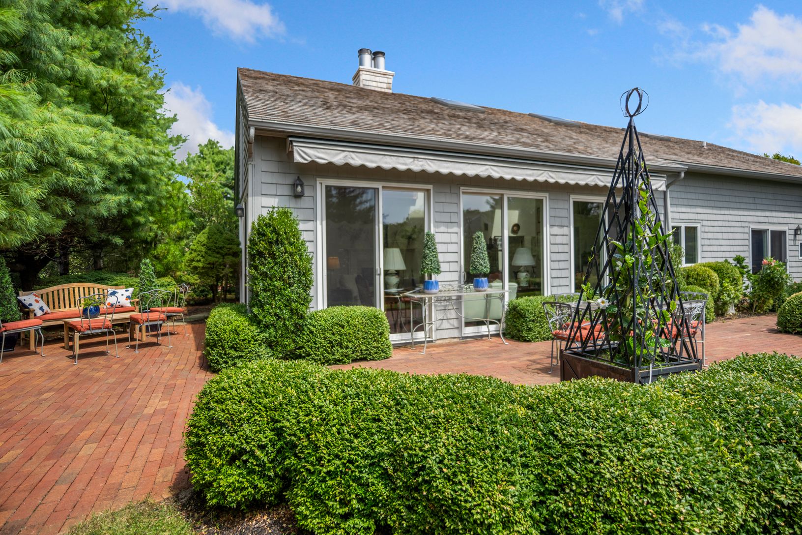 Discover luxury living in the heart of East Hampton at Georgica Estates. In close proximity to shops, dining and beaches, this premier condominium community seamlessly combines the comfort of a spacious, free-standing home with the benefits of condo living. The community's pristine amenities include tennis/pickleball, a large heated gunite pool and clubhouse. The house offers 3 bedrooms, 2 baths, a great room with cathedral ceiling, fireplace,