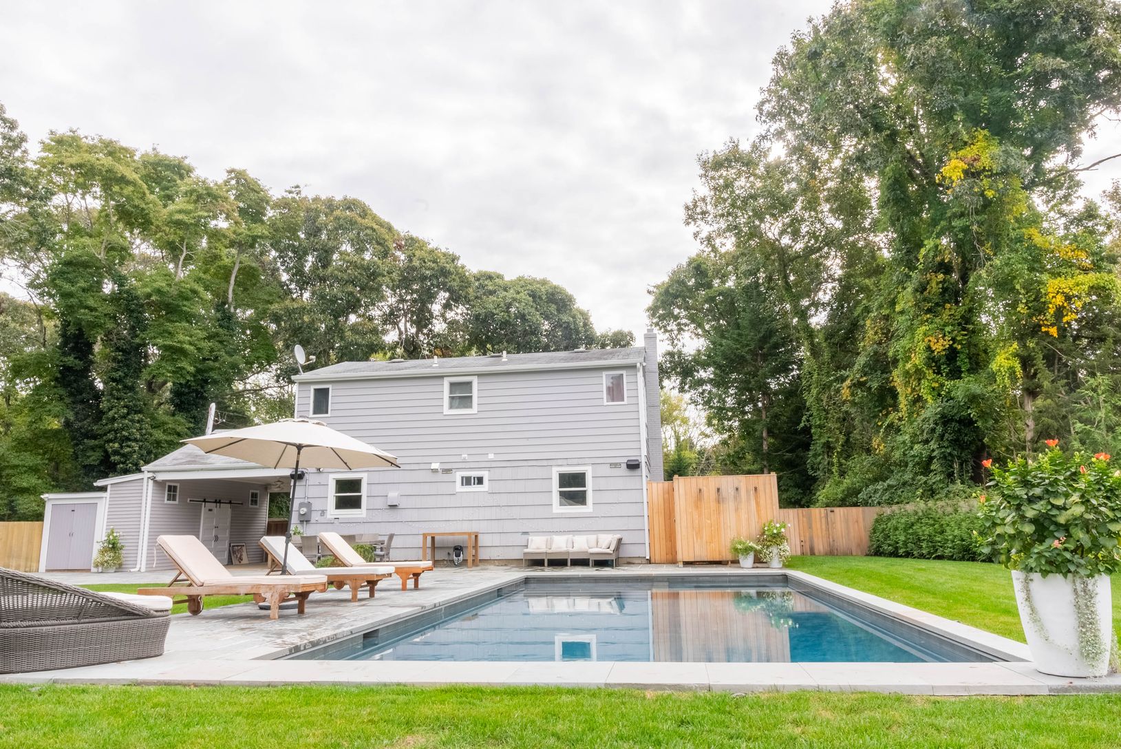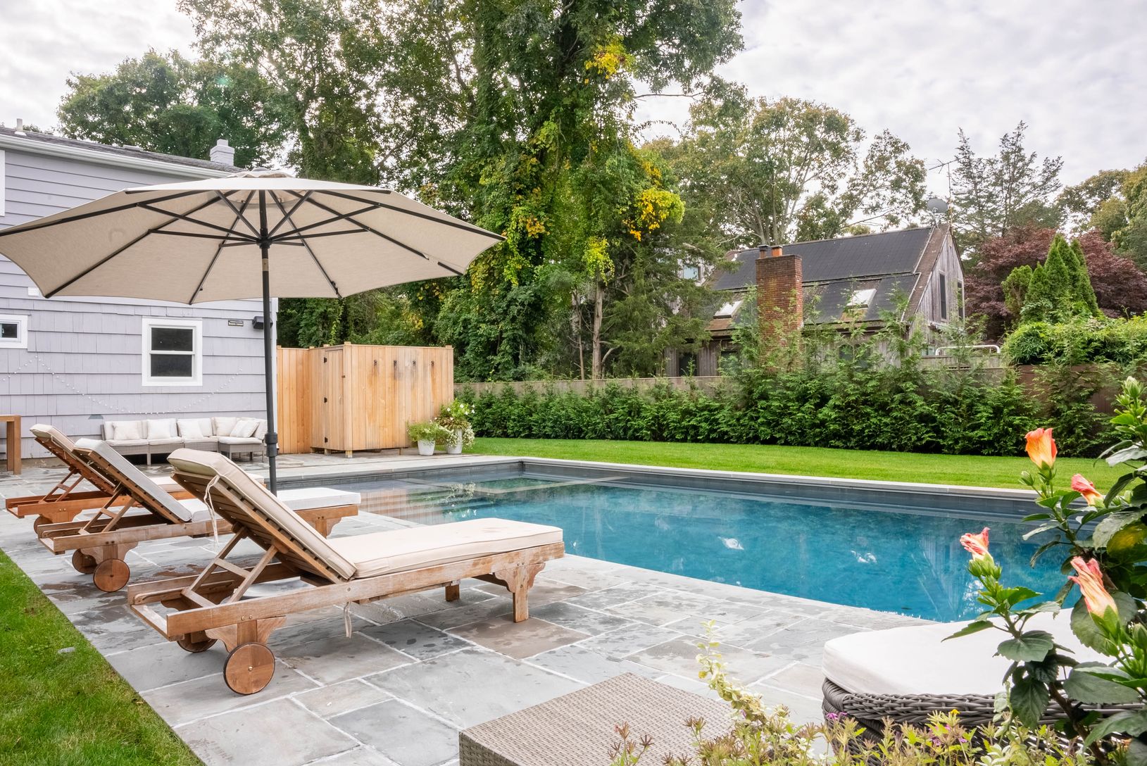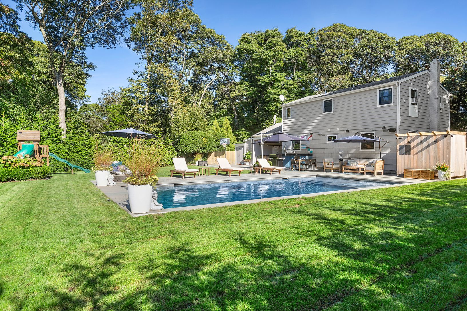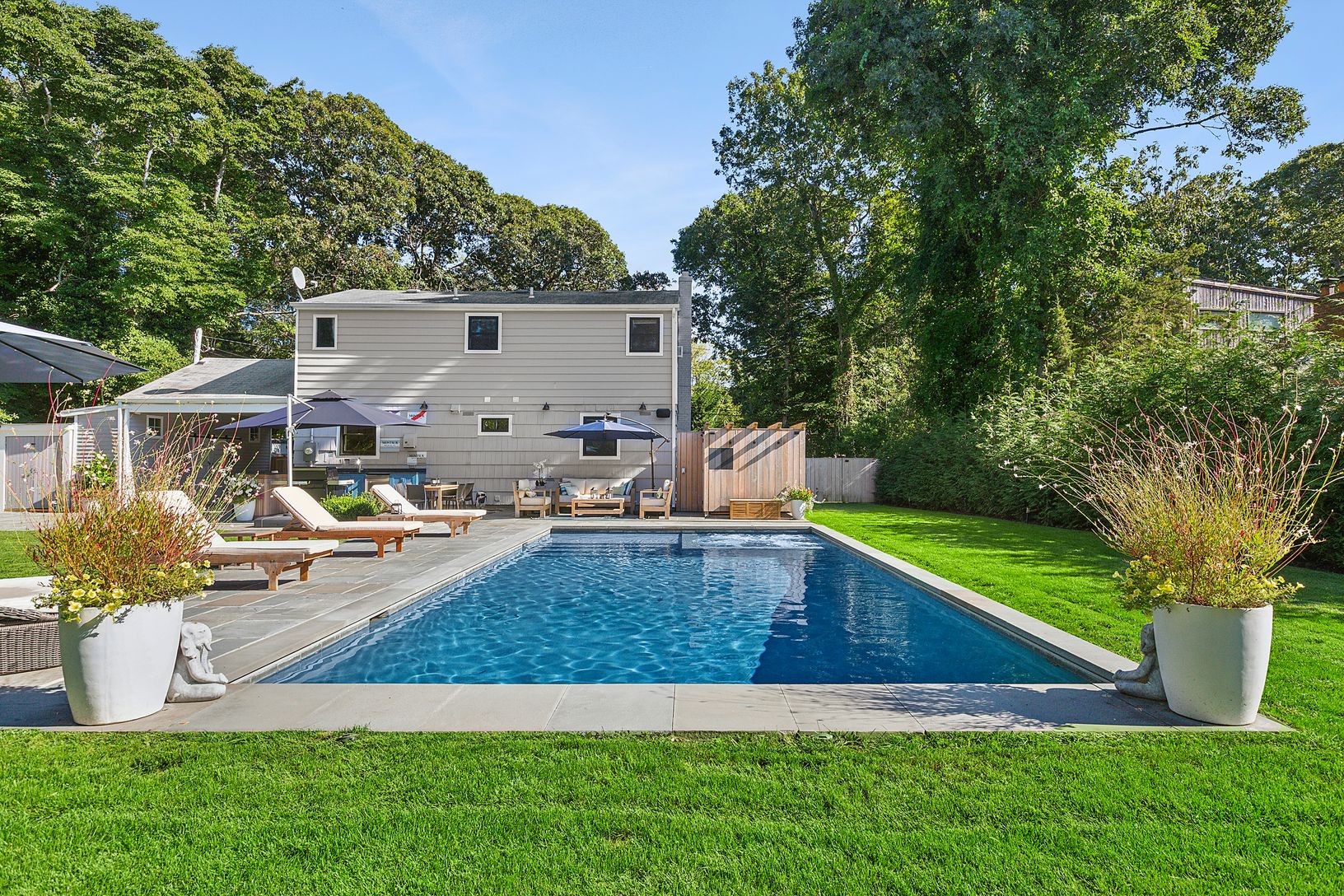 Experience the epitome of East Hampton living in this exceptional 4-bedroom, 2-bathroom home nestled in the Clearwater neighborhood in Springs. Positioned on a generously landscaped shy half-acre lot, this residence seamlessly combines timeless charm with modern convenience. Relish in the allure of a heated gunite pool with a built in spa for endless summer enjoyment, complemented by an outdoor shower, grill, and an outdoor Sonos system to enh