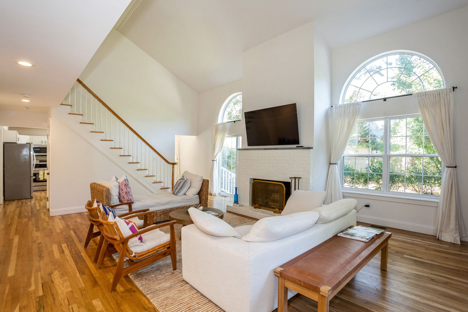 All new furnishings for 2022 season, Cedar-shingled, chic, and south of the highway, this stunning oasis in Shinnecock Hills is the perfect Hamptons getaway. Inside and out, the exceptional light-filled 2,000+/- square foot Post Modern features a heated pool, five bedrooms, four baths, double-height living room with fireplace, eat-in-kitchen with sliding doors to the sunny south facing backyard patio and pool area plus an additional 1,200+/- s