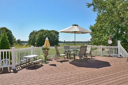 Not often does one come across a unique offering such as this ! 4.5 Acre's on the water with incredible privacy. Sandy beach with town approval for dock . The custom built 3000 sq ft home with wrap around deck ,screened in porch and multiple decks, three car garage and full basement . First floor master with f/p , formal dining room , chef's kitchen and a vaulted living room with Fireplace . Separate guest quarters and no flood insurance need