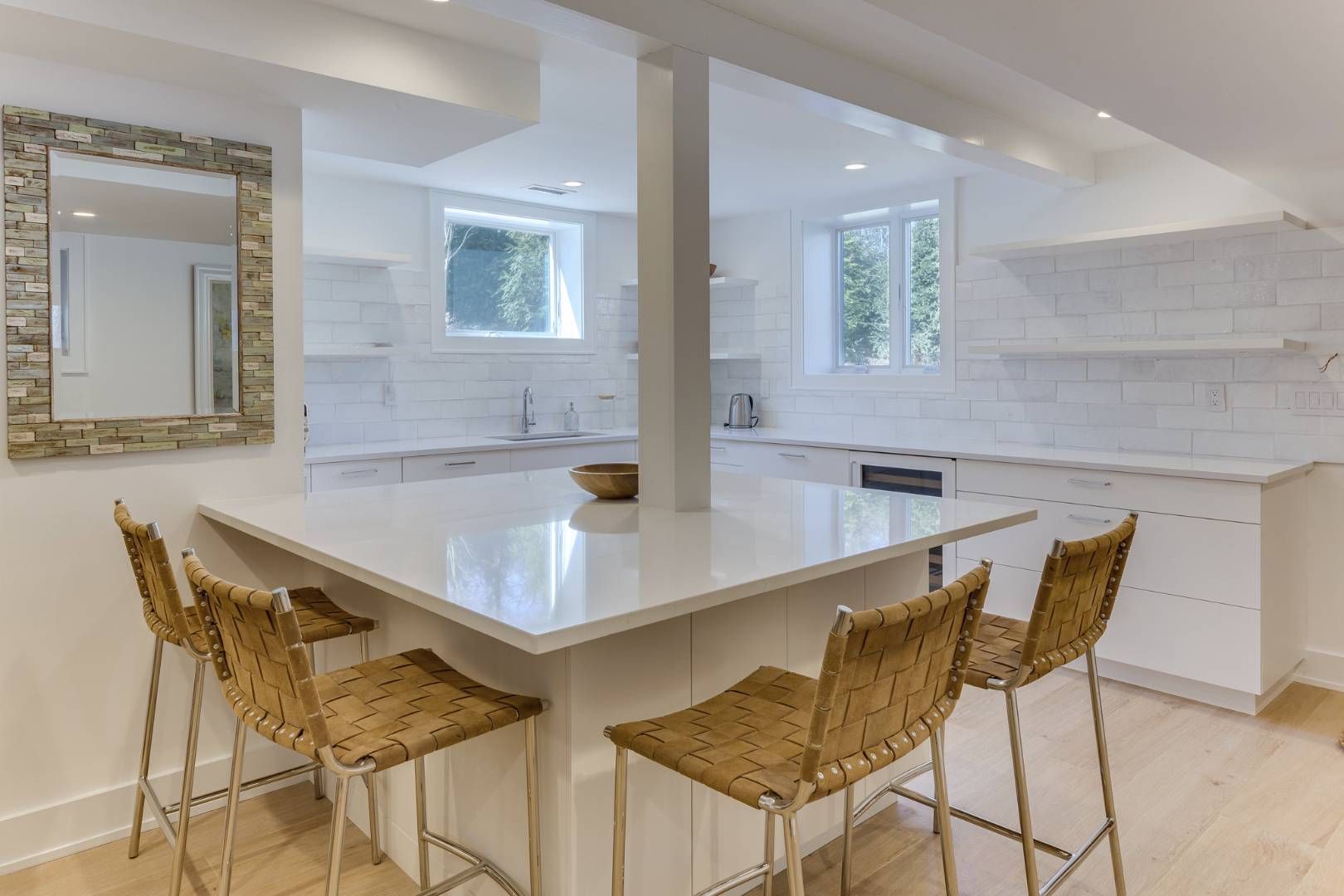 Located down a quiet cul de sac, this well-appointed contemporary style beach house has been updated from stem to stern, with a brand new kitchen complete with viking and sub-zero appliances, all new baths, expansive mahogany decking finished with cable wire railings, fully finished lower level with a wet bar. Quality craftsmanship and exemplary design combine with substantial water views in a way that is rarely found at this price.