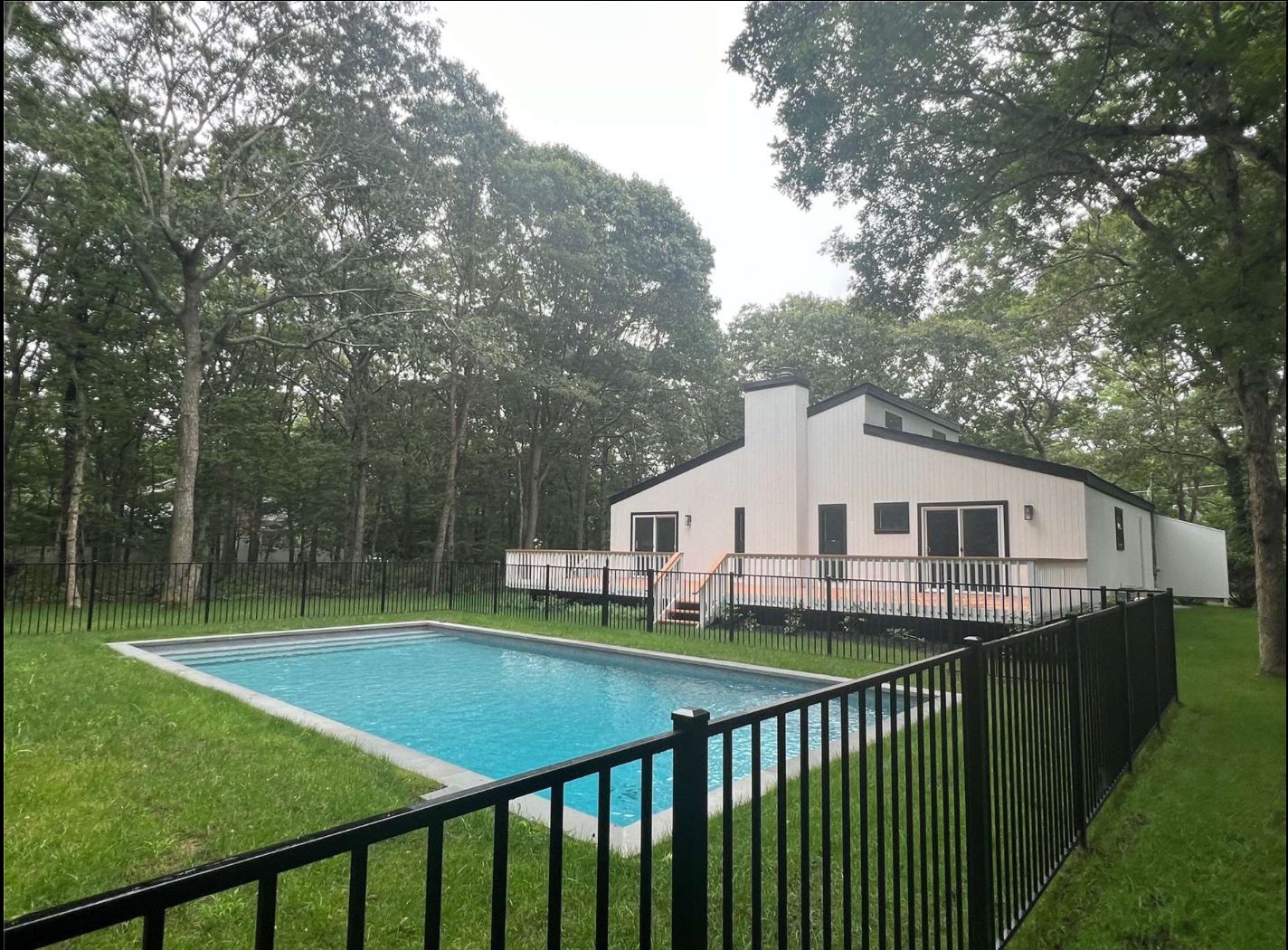 PRICE REDUCED CONTEMPORARY WITH DRAMSTIC 2 STORY CATHEDRAL GREATROOM, BLACK MARBLE FIRE[PLACE, STAINLESS / QUARTZ CHEFS KITCHEN, LARGE PRIMARY EN SUITE, 2 ADDITIONAL BEDROOMS AND BATH, NEW SLIDING GLASS TO LARGE DECK AND NEW INGROUND POOL, NEW FINISHED BASEMENT. NEWLY REMODELED AND APPOINTED, COMPLETELY REPAINTED THROUGHOUT, FRESHLY REFINISHED HARD WOOD FLOORS. LUSH NEW LAWN. LOW TAXES, SHOWPLACE