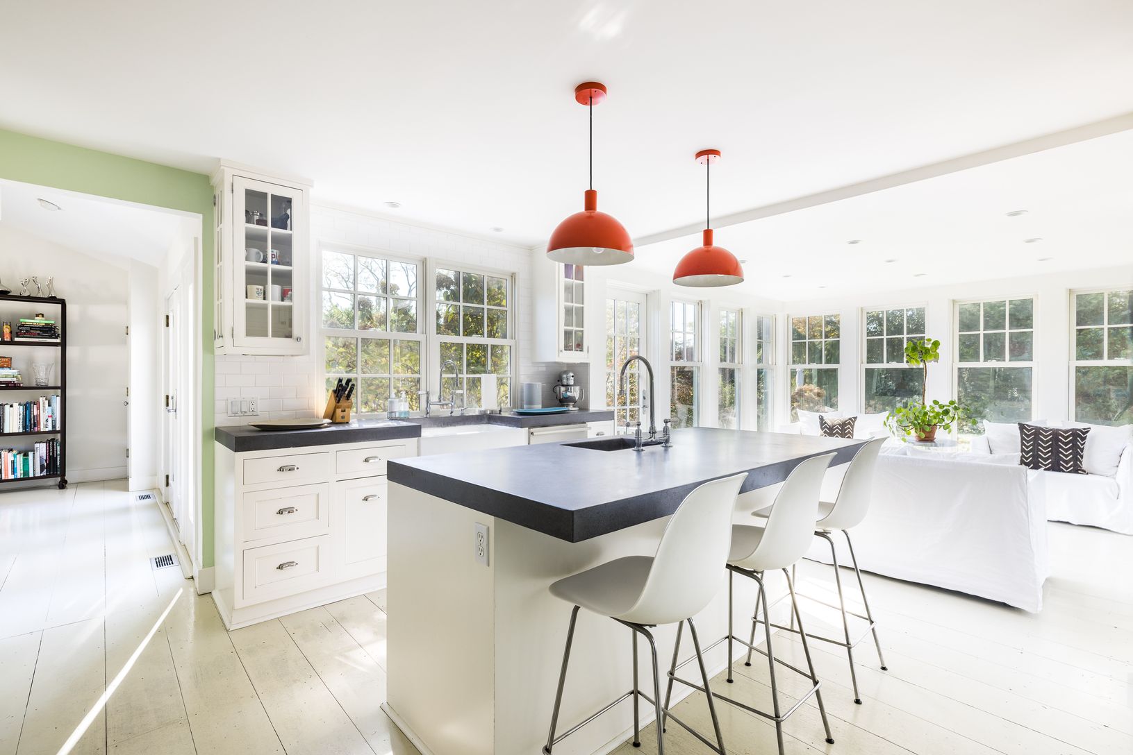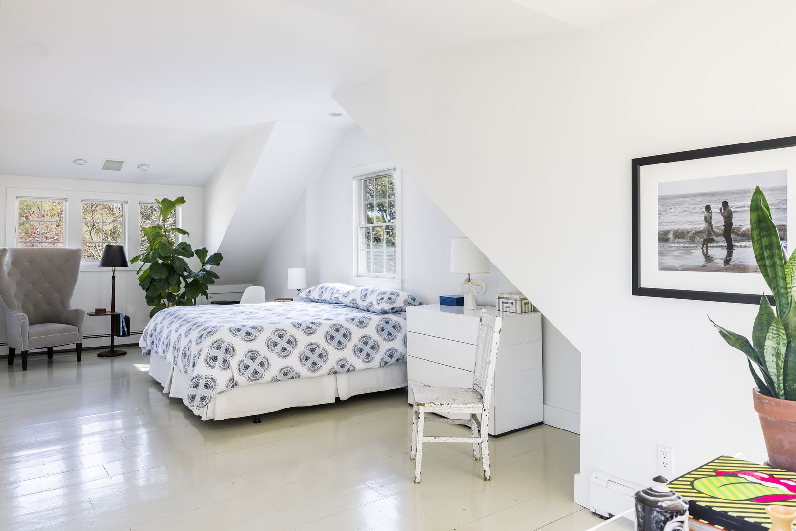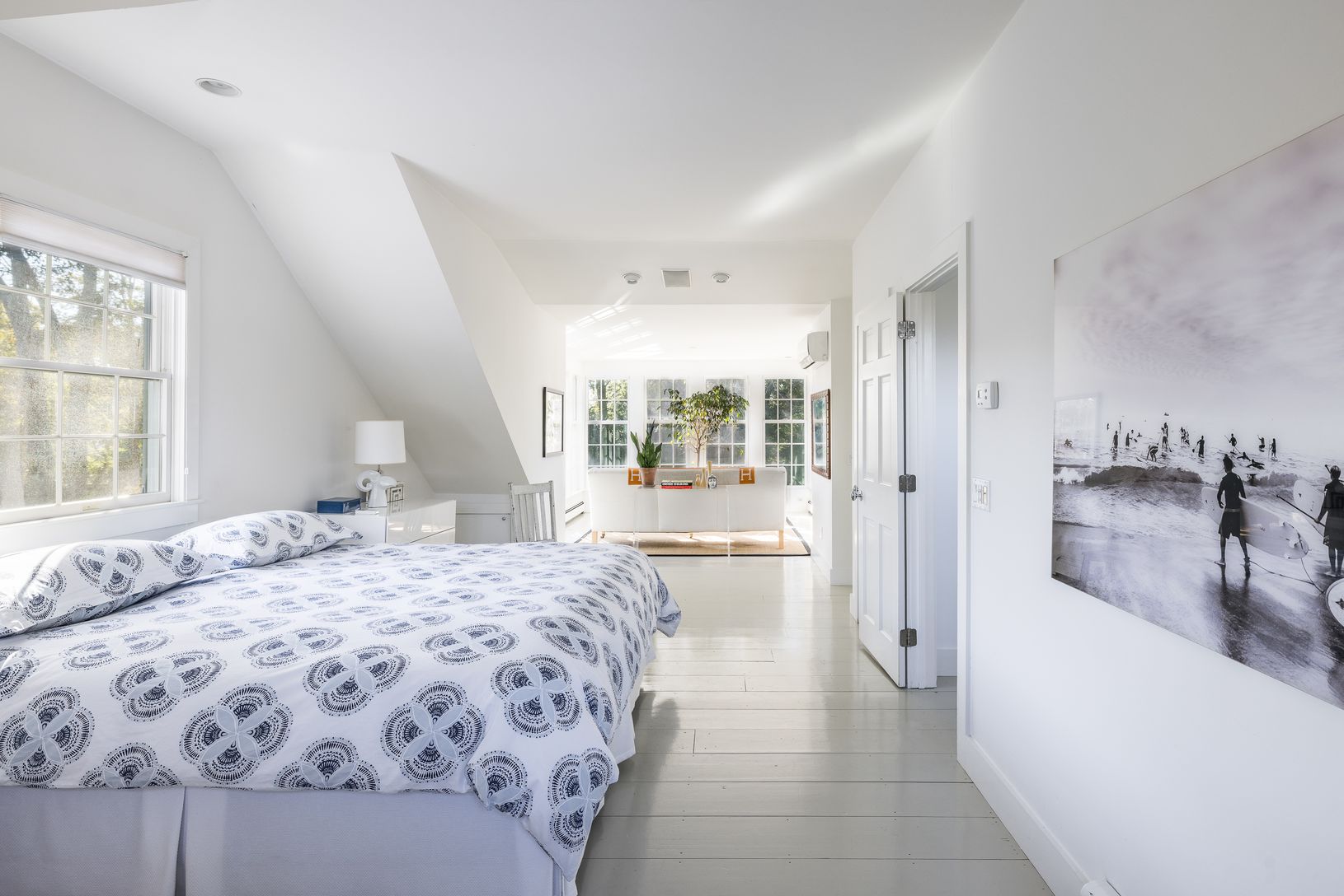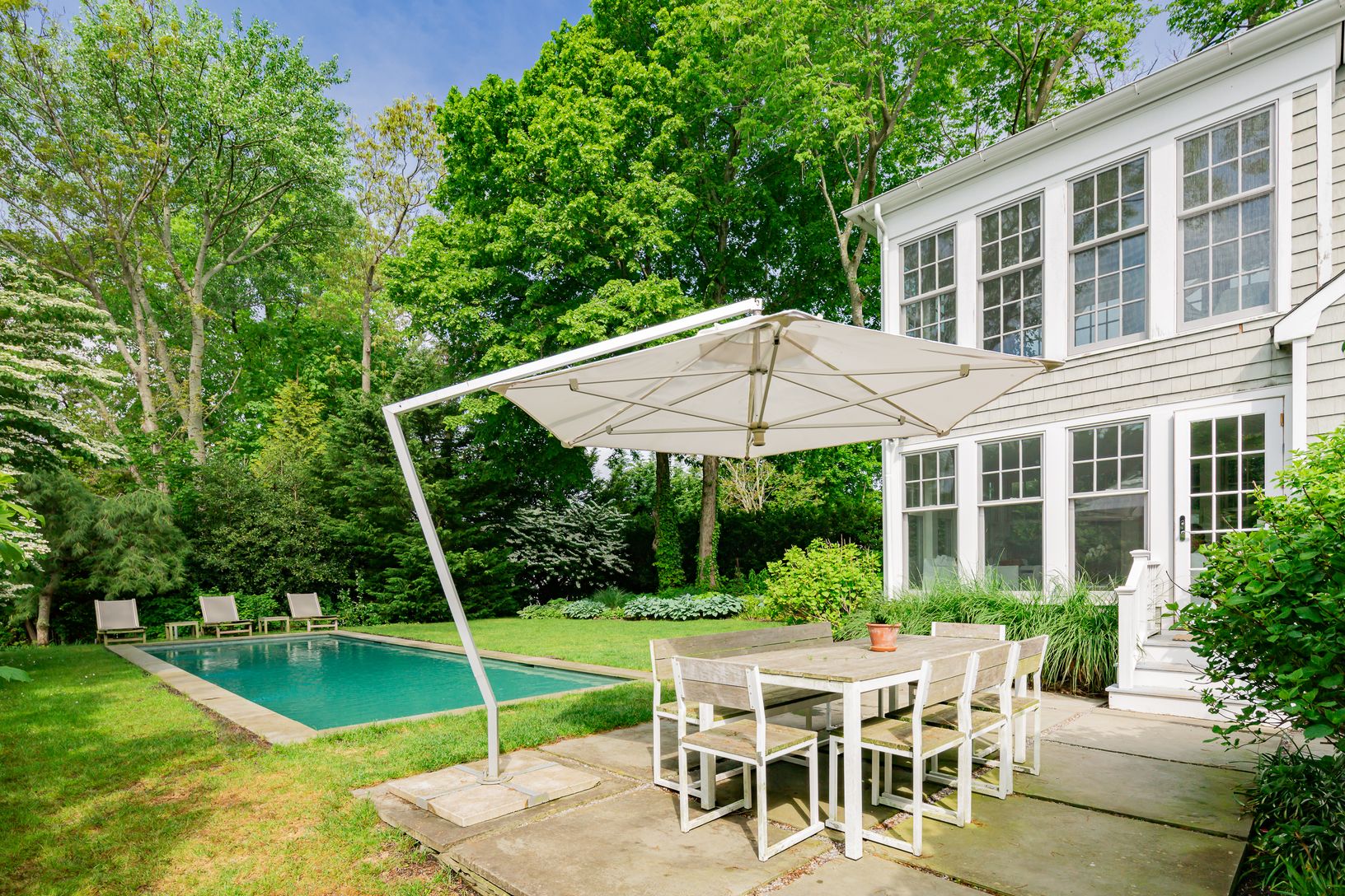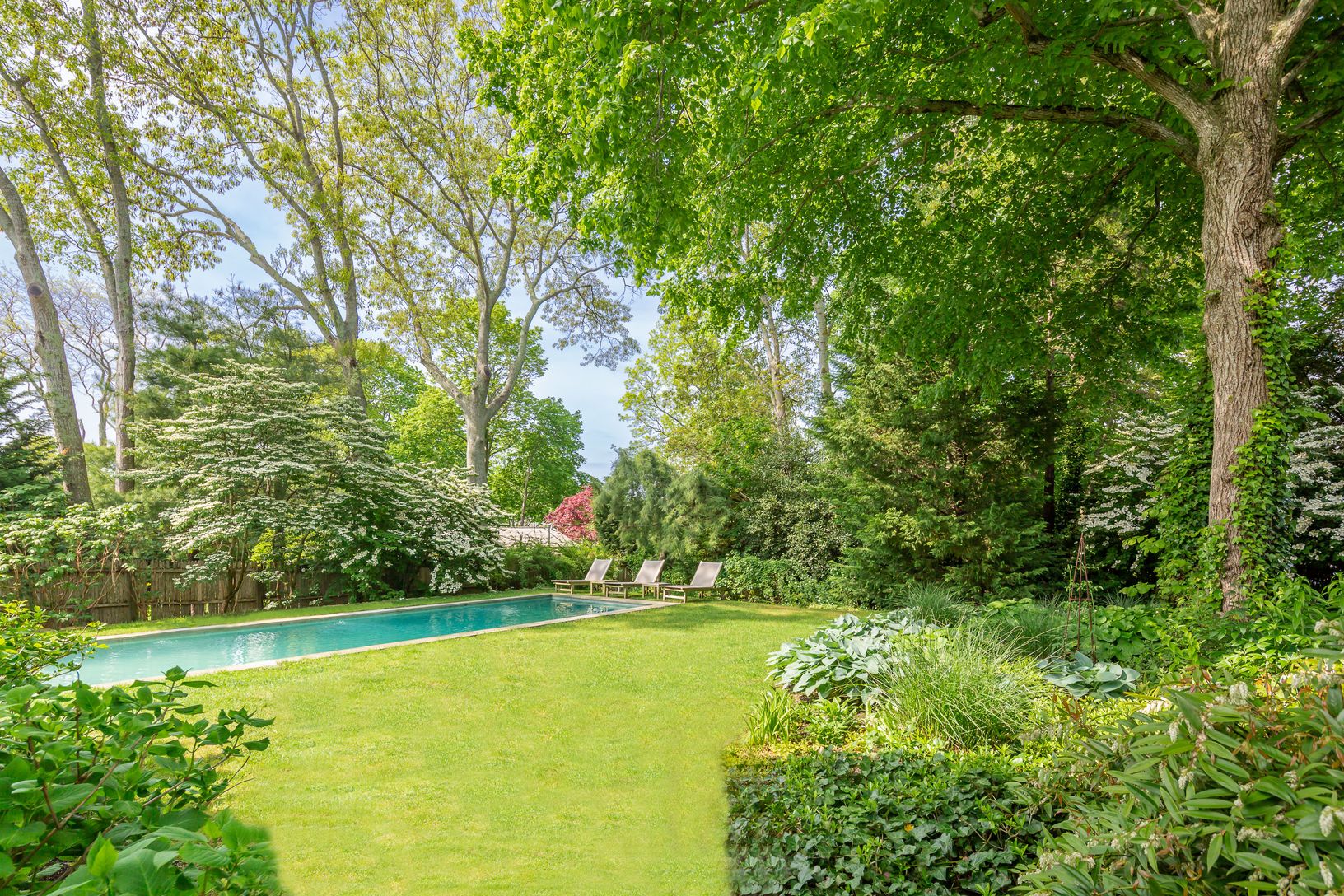 Nantucket style designer home in mint condition offering 4 bedrooms, 2 baths and the best of all worlds with a modern beach interior. Open light-filled spaces and a knockout kitchen with sunroom opening to an outdoor eating patio, gunite heated pool and enchanted garden. There are two guest bedrooms with bathroom. The second floor offers a luxurious primary suite with aerie, overlooking the lovely garden. In addition, there is a study/4th bedr