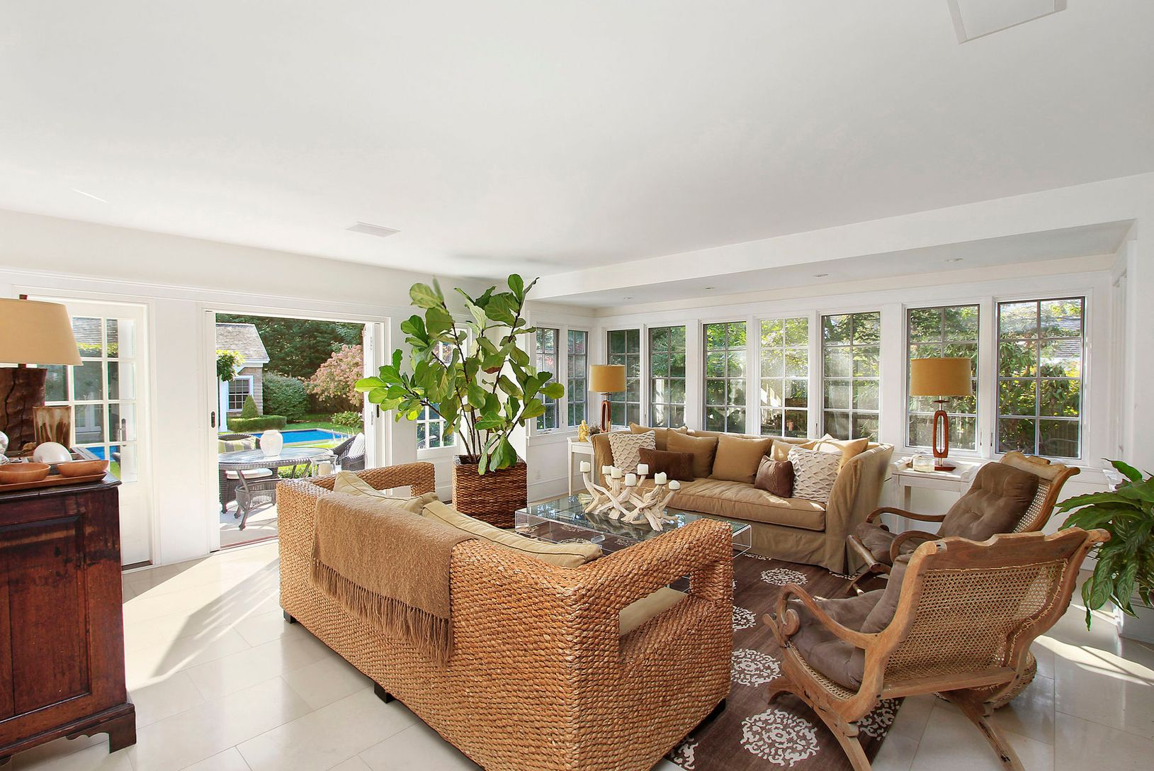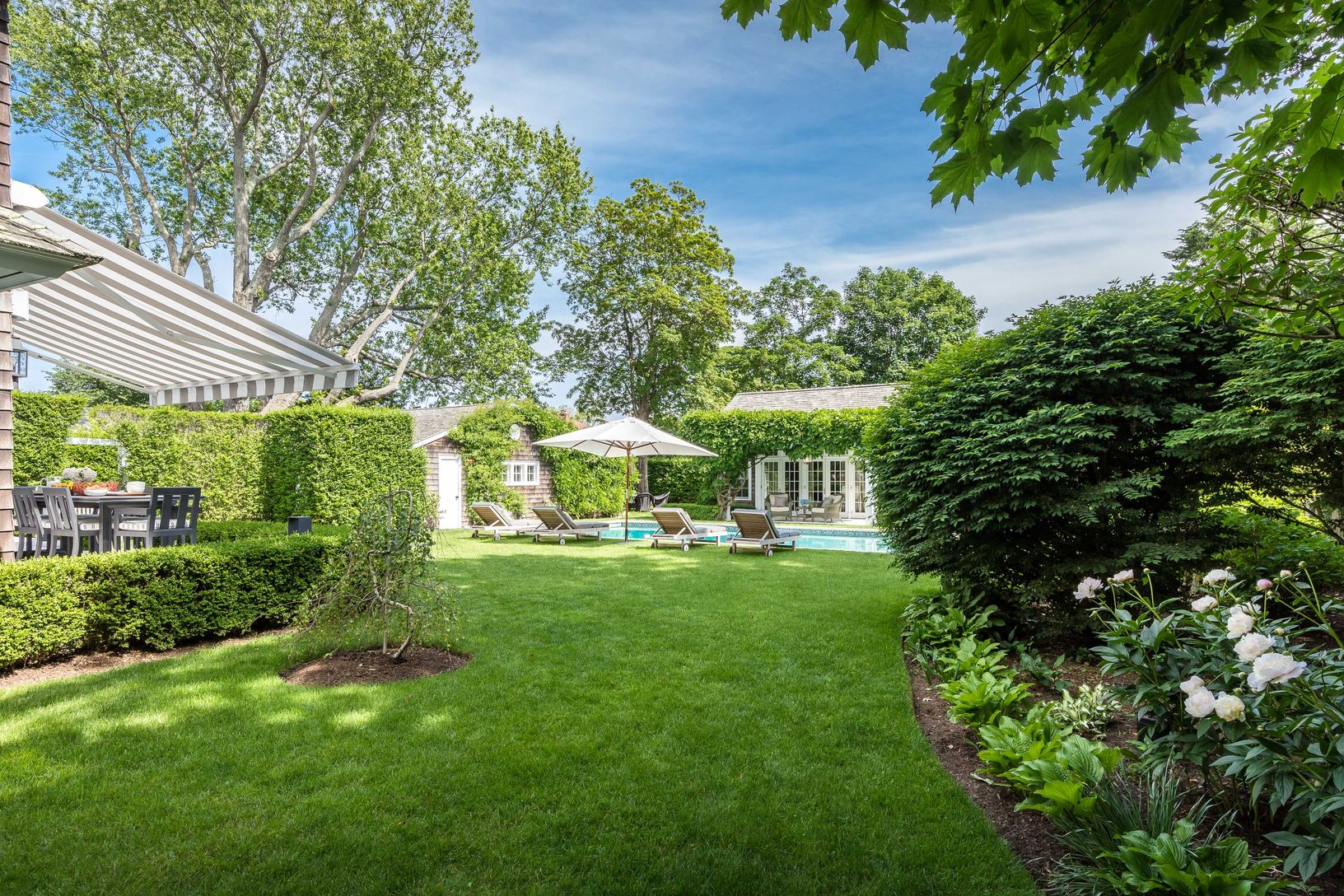 Style and comfort in Southampton Village! Beautifully decorated and completely renovated, four bedrooms and four baths, with additional accommodations possible in the elegant pool house. Fabulous gourmet kitchen, living room, sitting room, den, sun room, and complete gym in the finished basement. The private grounds are wonderfully landscaped and there is a heated pool.