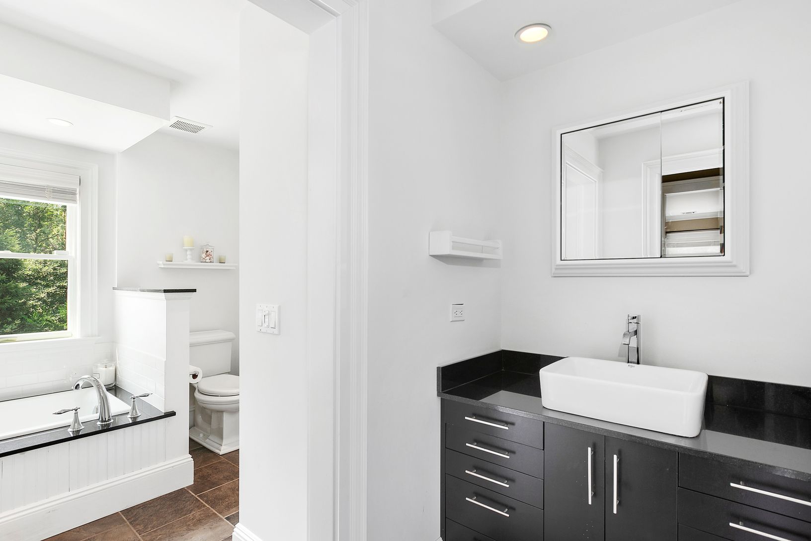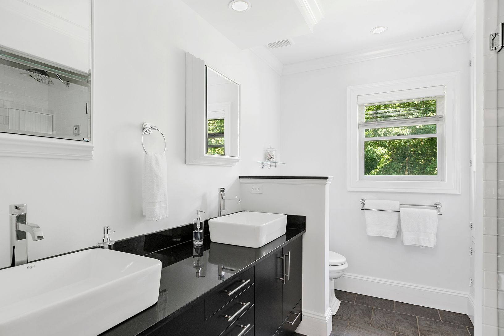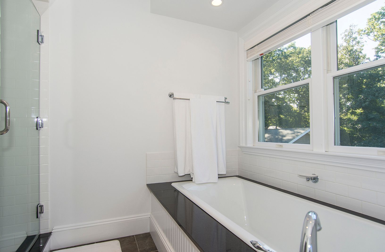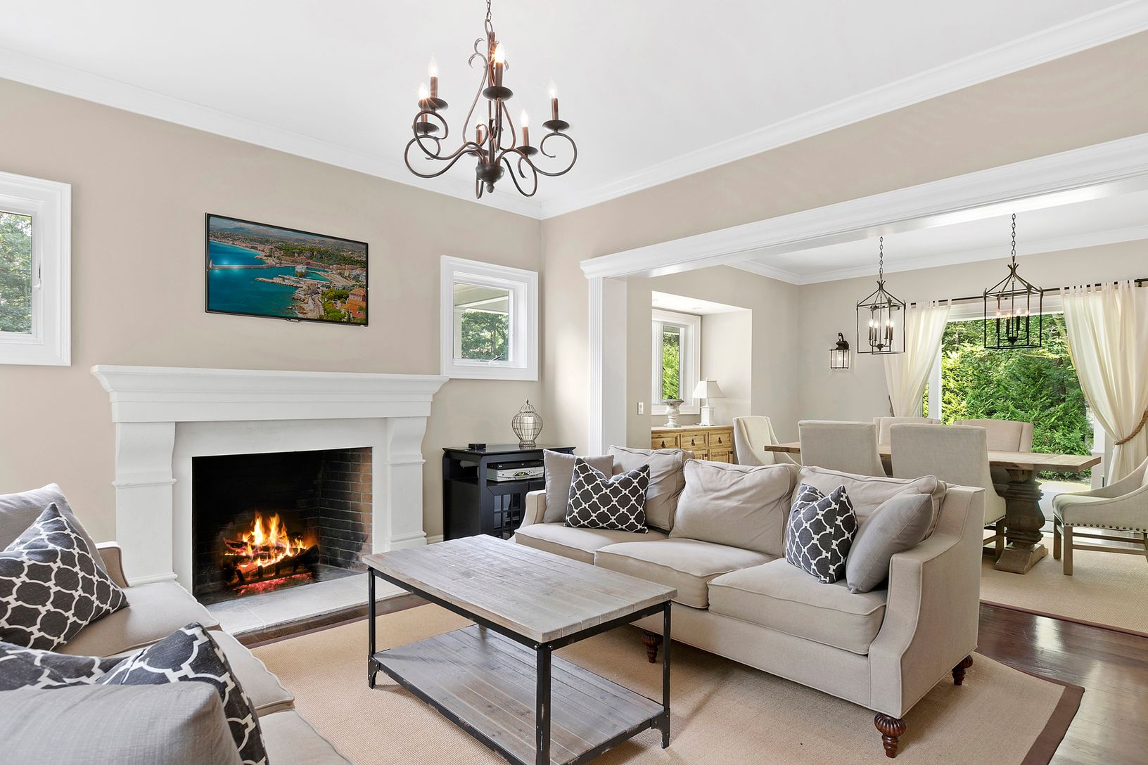 This stately, totally renovated 3,800 +/- sq. ft. home, with four bedrooms and three and one-half bathrooms, sits on nearly an acre in the sought-after neighborhood of historic East Hampton Springs. Located in quiet and desirable neighborhood, this magnificent home is designed to feel and reflect a historic village house. An impressive and welcoming foray leads into the great room with gas fireplace, a new chef's kitchen, and stately library.
