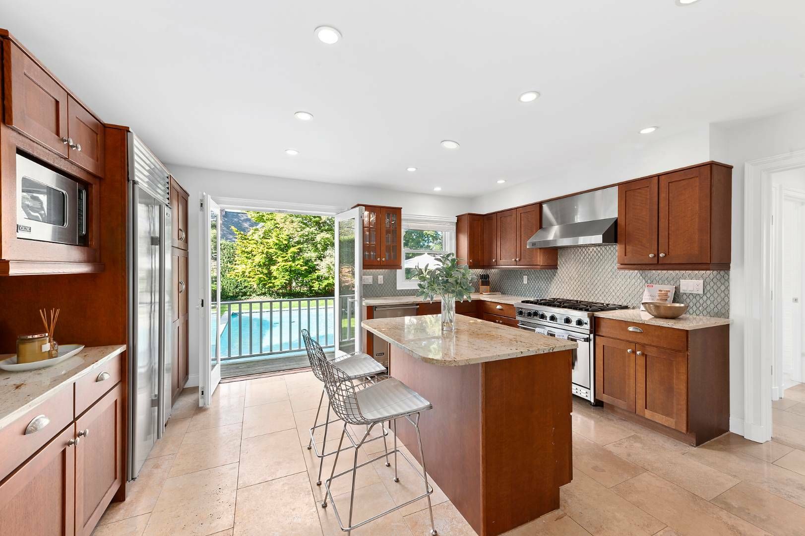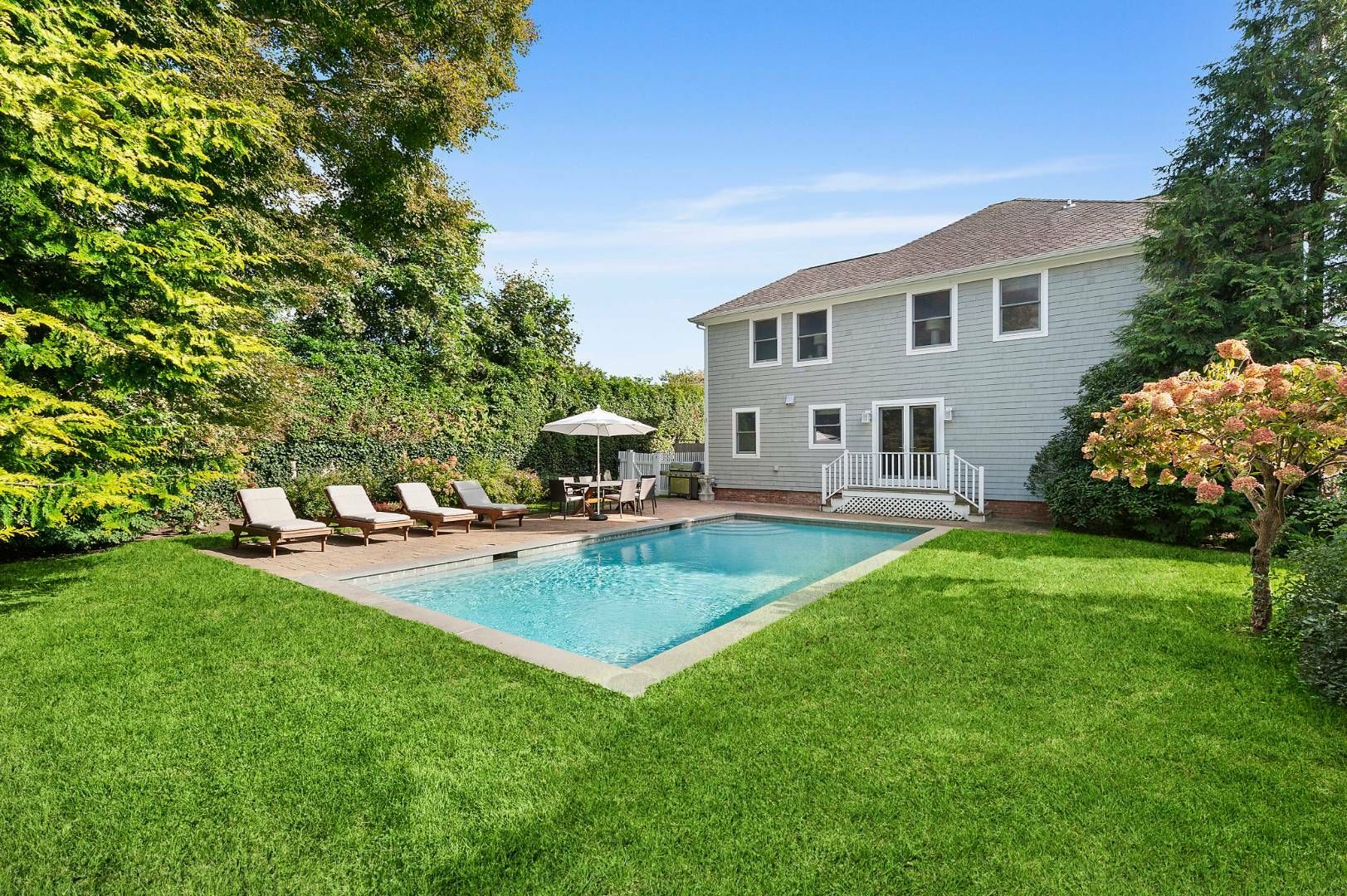 Wonderful Traditional right in the heart of Southampton Village, on a quiet street and less than a mile to ocean beaches. On a wide lot with a private backyard and beautiful landscaping, heated gunite pool, outdoor shower and a cozy side deck, this home is the perfect summer retreat. Totally renovated with style and an open floor plan, this home offers 3 bedrooms, 3 bathrooms, den/4th bedroom, spacious living room with gas fireplace, large che