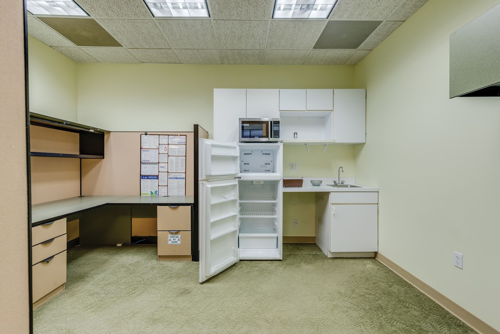 This office condo suite is about 1,500+/- sq. ft. It has a reception area, five private offices, a kitchenette/work area and one other open work area. Conveniently located just outside the village with a large parking lot.