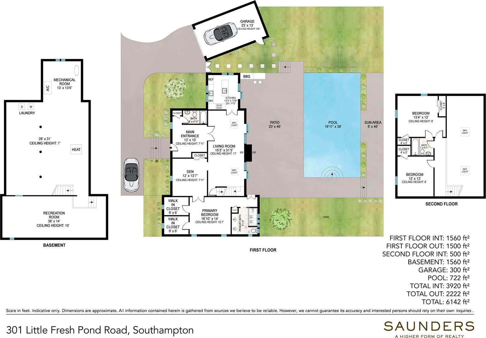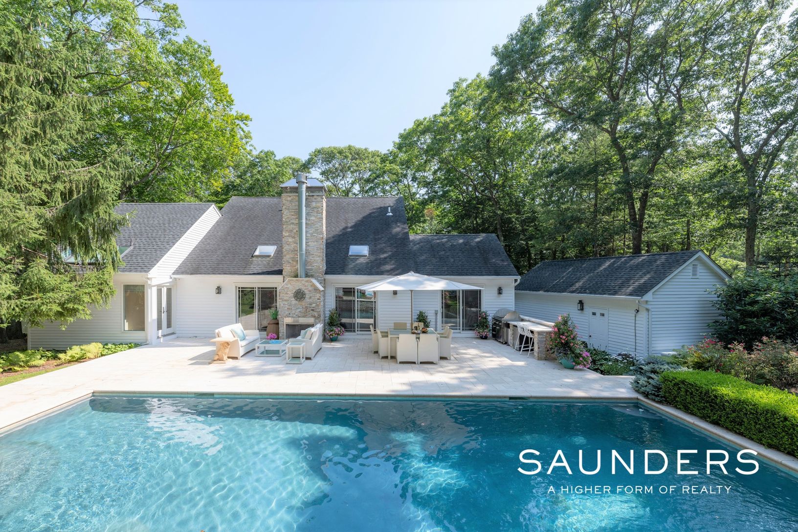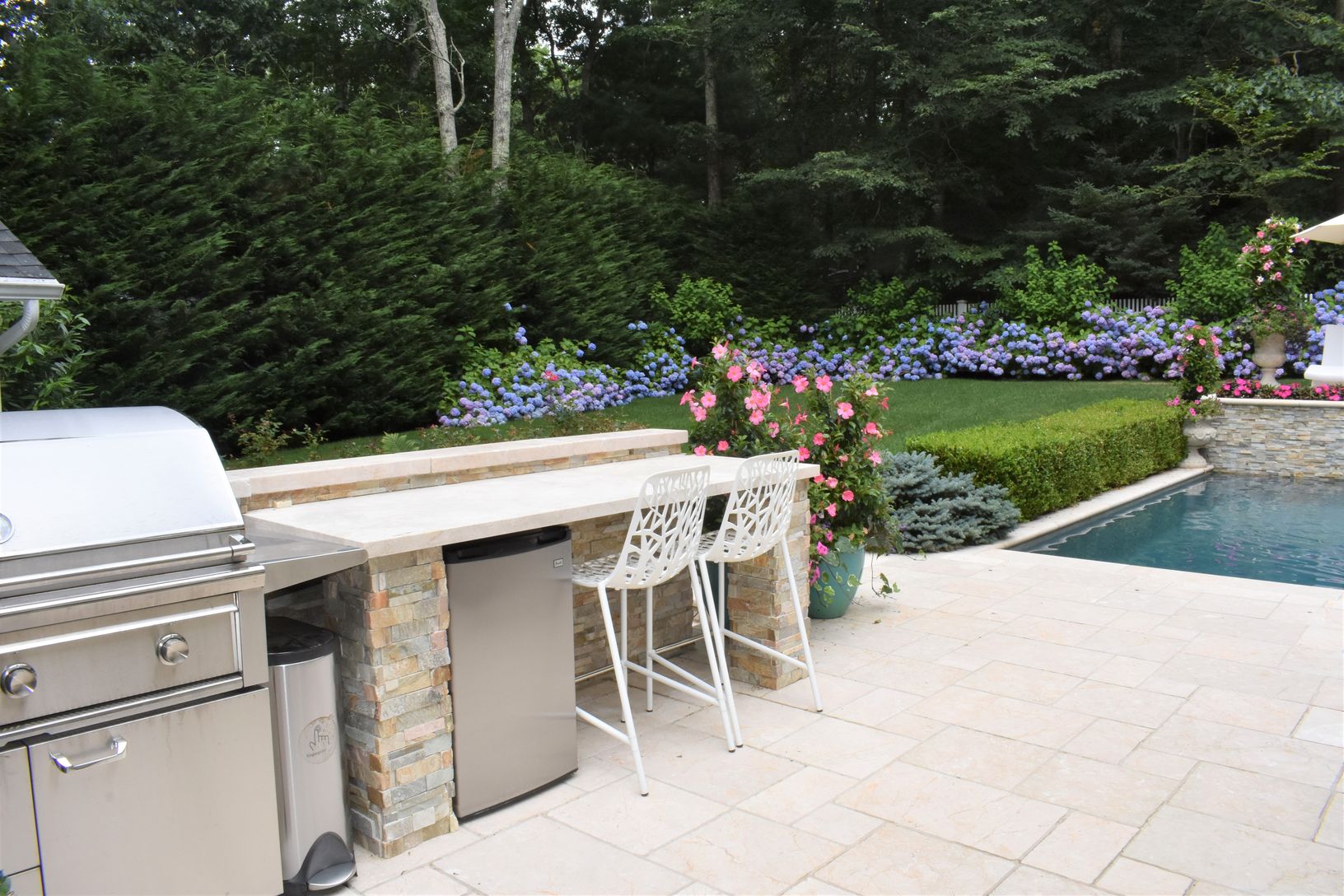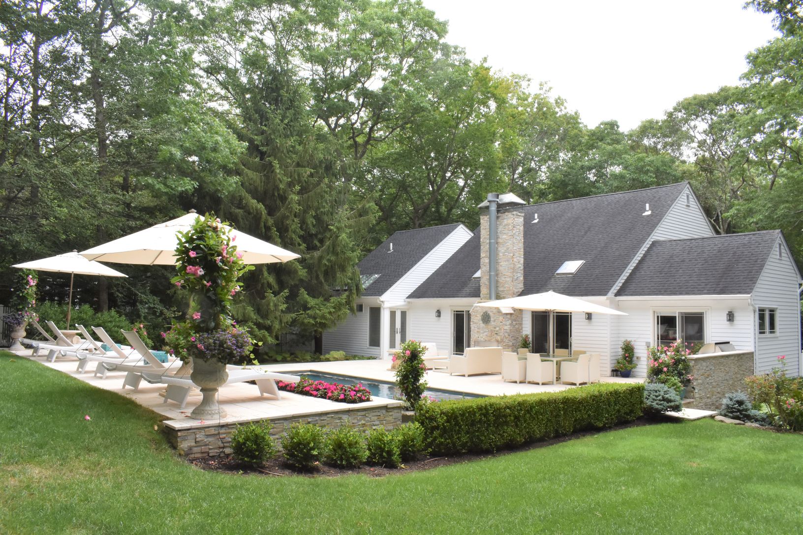 This beautiful turnkey Hamptons home is perfectly located close to town and beach and is a rare gem boasting 2,100 +/- square feet of interior space with three bedrooms, three full bathrooms, and a pool oasis that is a divine setting for summer cocktail parties, al fresco dining, and basking in the summer sun. The heated 20' x 38' Gunite saltwater swimming pool is really a masterpiece of resort-style living with three waterfalls, a surrounding