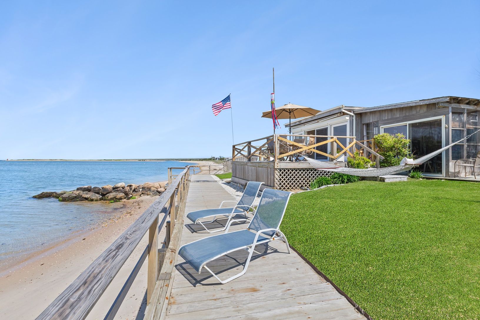 Located in Amagansett's idyllic bayfront community, Lazy Point, 302 Shore Road is the quintessential Hamptons beach cottage-ever coveted yet rarely available. Complete with nearly 80' of bulkheaded frontage along Napeague Bay's pristine waters where picture-perfect views are center stage from practically every vantage. Take in sunrises over Napeague Harbor's Hicks Island and sunsets out across the bay-on clear days, the views extend straight n